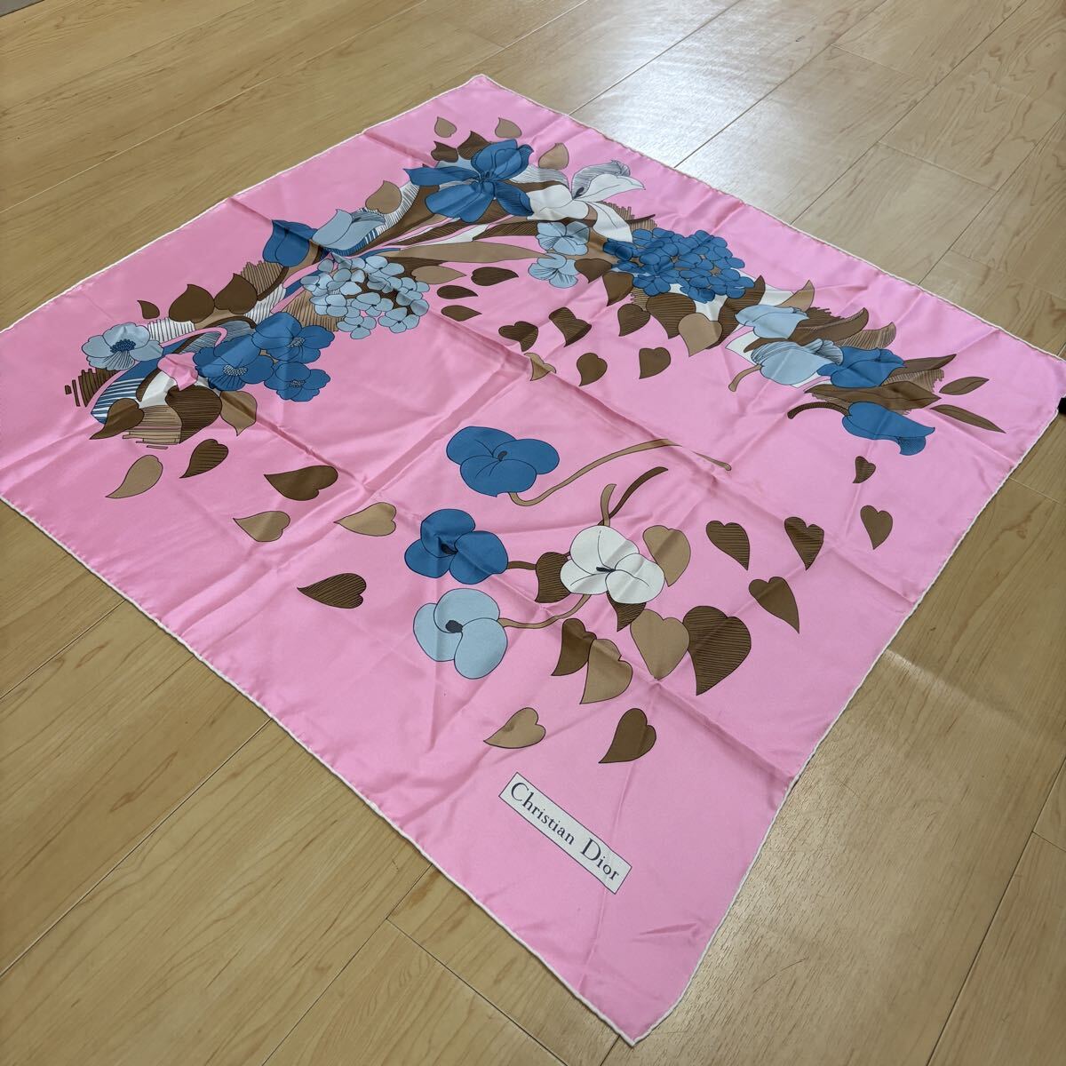 Christian Dior クリスチャンディオール スカーフ 花柄 ピンク ふちホワイト no.45