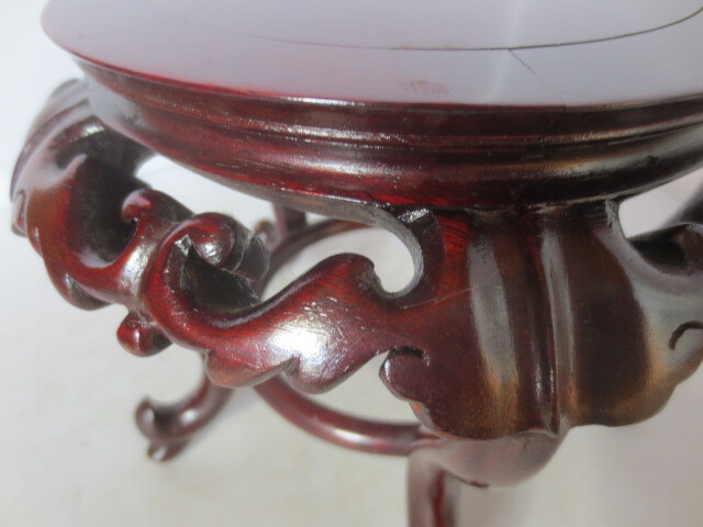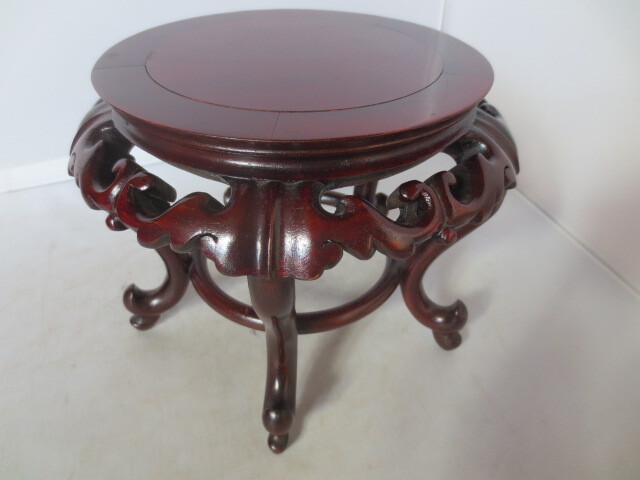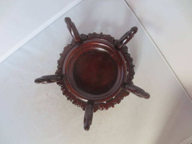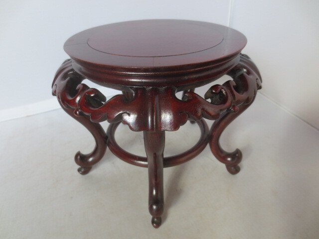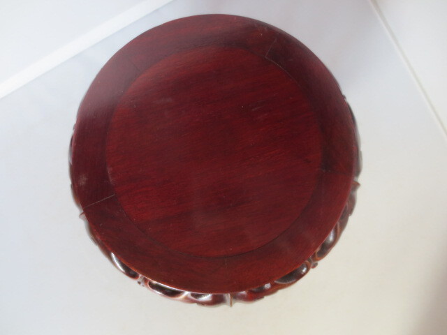 【艸】 R7/10/10-3 唐木透かし膜高卓 花台 香炉卓 平卓  盆栽水石花台 天盤幅約15.5センチ  中国古玩 10oct3