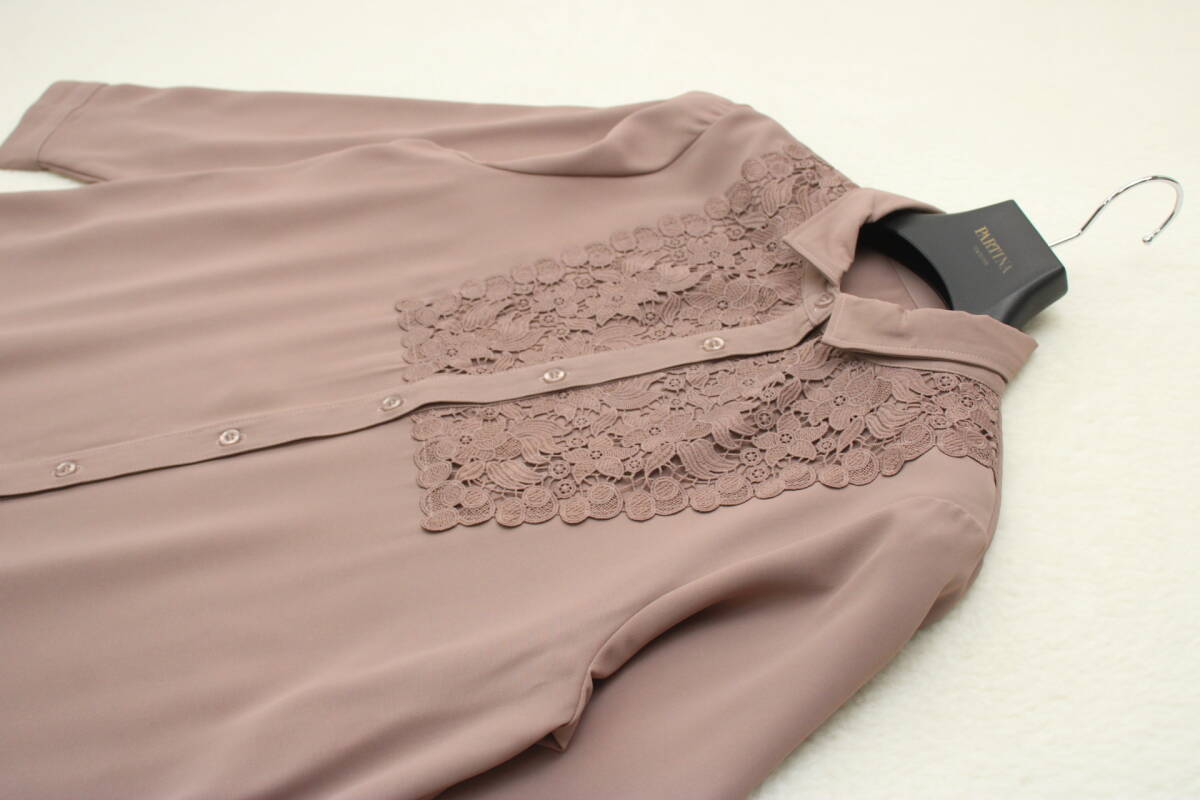 5315 新品 レース使いチュニックシャツワンピース 定価¥23,000+税