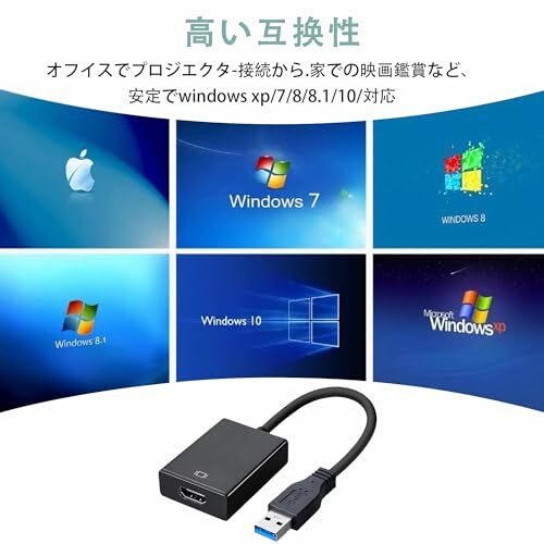 【システムとの高い親和性&アフターサービス】USB HDMIアダプタはUSBポートを搭載したノートパソコンとデスクトップパソコンをHDMIに対応したプロジェクター、テレビなどモニター側に接続して使い、より大画面で、より鮮明な映像を楽しむほか、拡張モードで複数のタスクを同時進められており、作業効率を向上させることが可能です。USB2.0まだ3.0デバイスに接続する場合、ドライバーインストールした後解像度は1920*1080を設定し、画面が映ることができます(システムによって互換性の解像度が異なる)万が一商品に不良・誤送・破損・分からないことなどございましたら、弊社にご連絡ください。