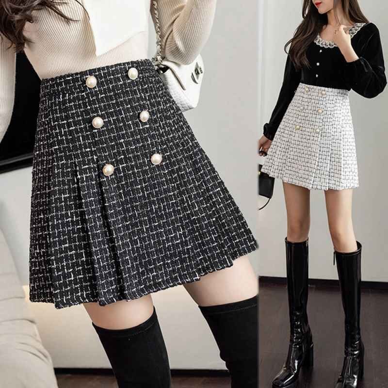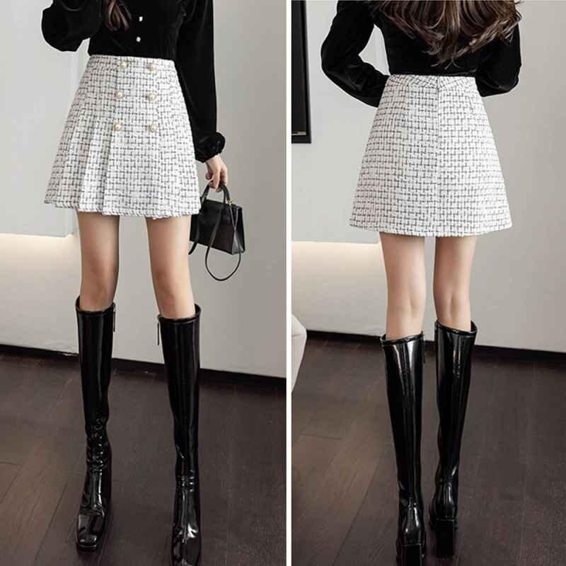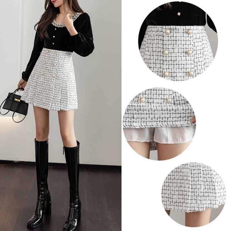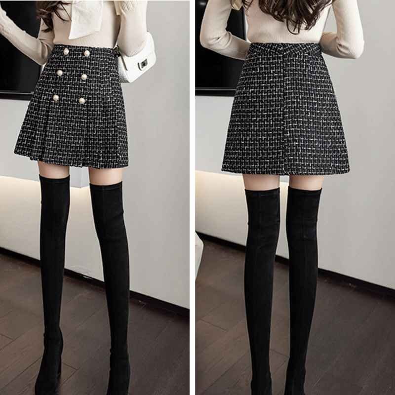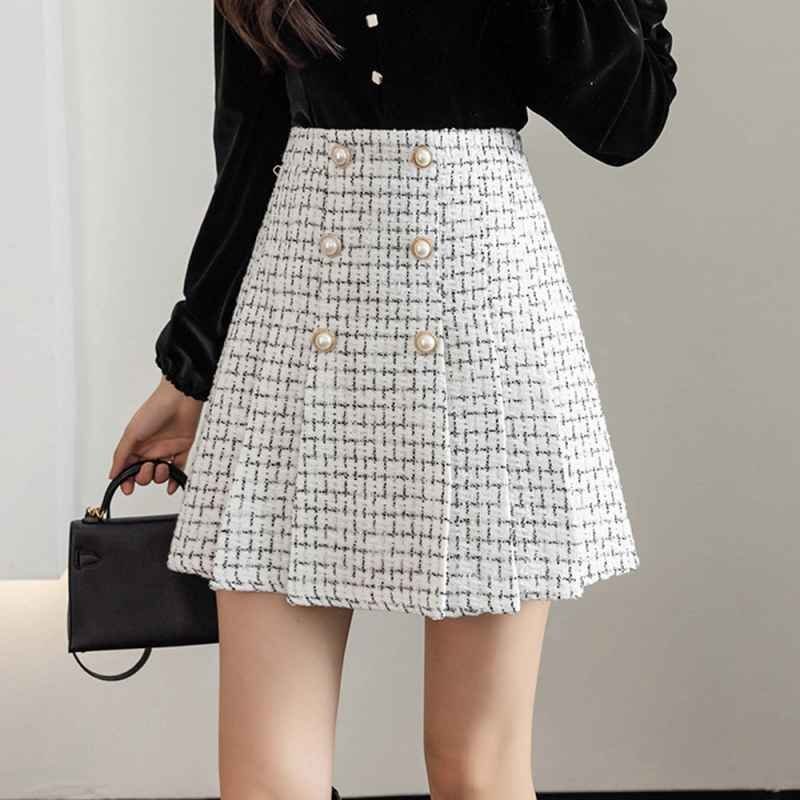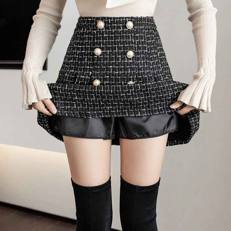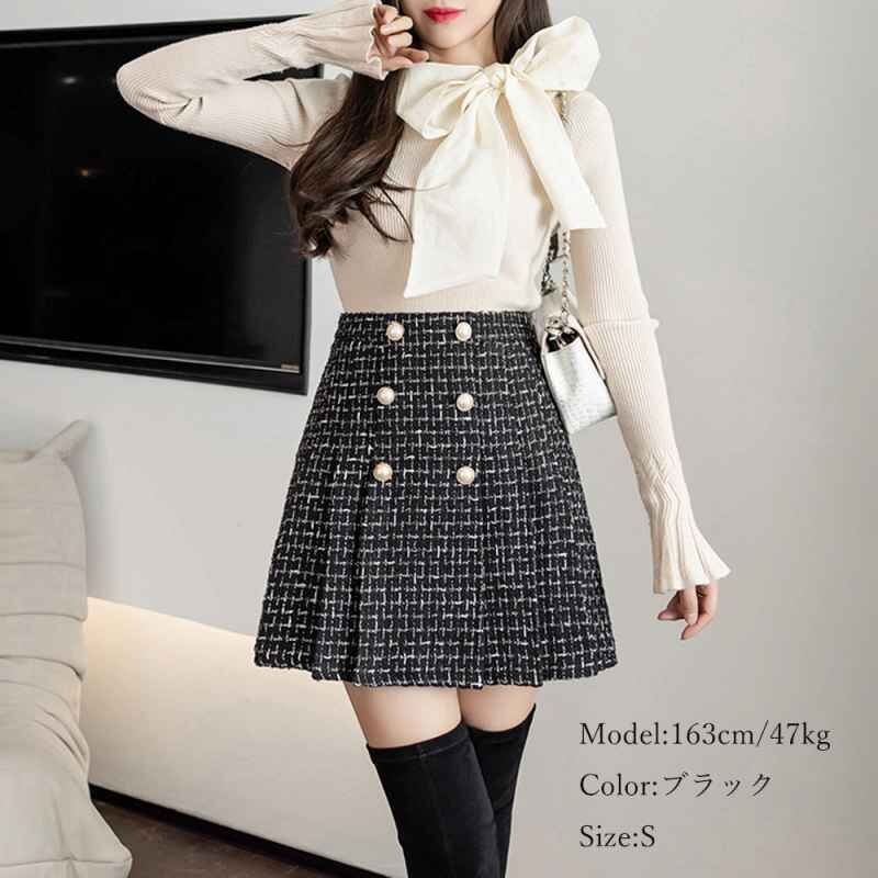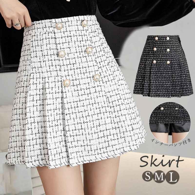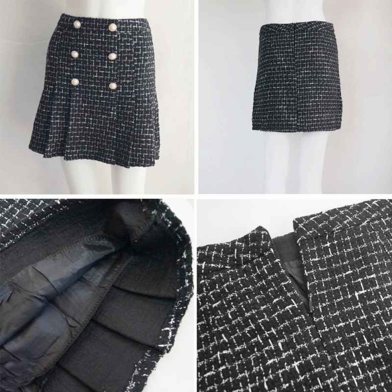 スタイルがよく見える台形シルエットなツイード風ミニスカート