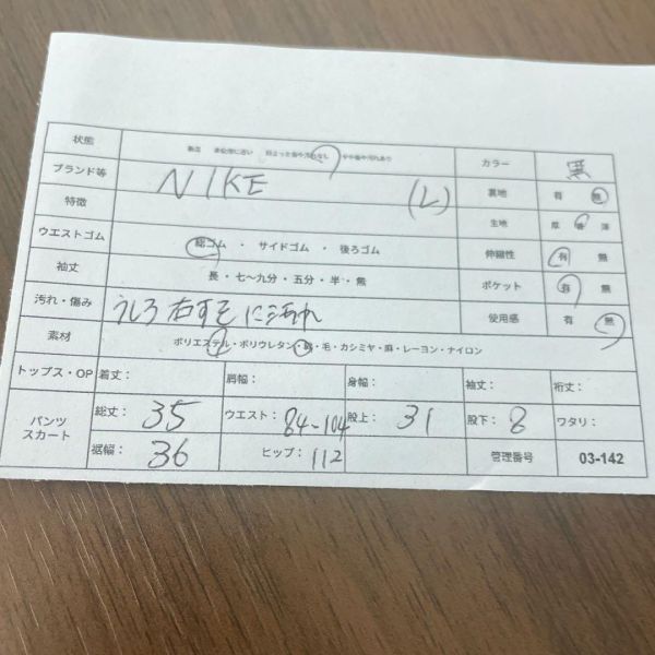快適さとスタイルを兼ね備えた、NIKE定番ブラックショートパンツ - ブランド:NIKE - サイズ表記:L - 素材:綿 コットン・ポリエステル - カラー:ブラック - シーズン:春夏 - 服の特徴:ウエストゴム仕様、ワンポイントロゴ刺繍入り、ポケット有 - ダメージ・汚れ詳細:うしろ右すそに汚れあり - 裾の長さ:ショート丈 管理番号: 03-142 即購入大歓迎・お得な割引各種あります 詳しくはプロフィールをご覧ください! 匿名&送料無料 海外輸入のため全て一点ものです 古着のため使用感・毛玉等があることもあります。写真で状態の確認を行なってからご購入ください おまとめ買いでお得な割引あります♪ 平置き採寸表→写真から確認いただけます! (素人採寸のため、多少の誤差はご了承ください) 商品状態に関しては、写真、商品説明欄に記載しております。着用回数、購入時期などはお答えできませんので、ご了承ください。着画、写真の追加もお断りしております。 簡易包装のコンパクト発送となります。 畳みシワはご了承の程、宜しくお願いいたします。 商品によっては圧縮してお送りするものもございます。 撮影環境や使用するモニター、反映されにくい色味など、 商品と画像に若干の色誤差が生じますことをご了承ください。 出品作業の際にしっかりと確認はしておりますが、シミなどの見落としがある場合もございますのでご了承下さい。 古着の取り扱いになりますので特有の匂い等がある可能性があります。ご理解のある方のみご購入の程お願い致します。