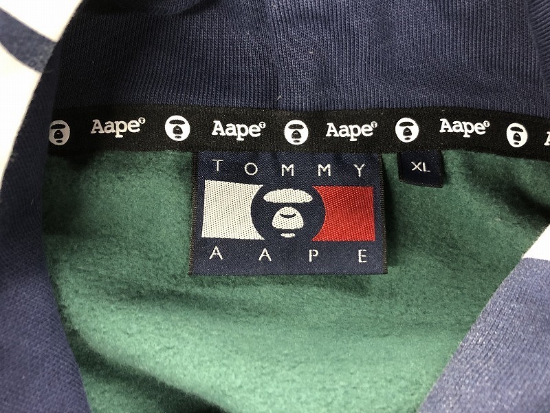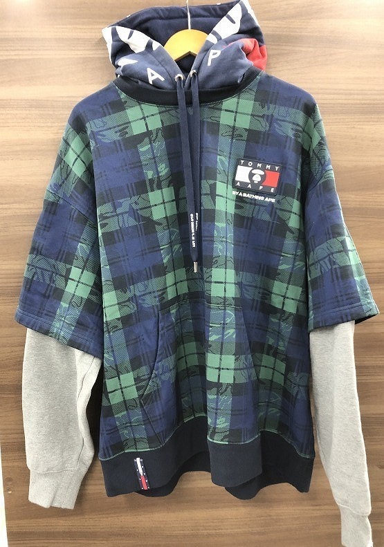 商品名TOMMY HILFIGERxAAPE BY A BATHING APE フェイクレイヤードフーディー パーカー