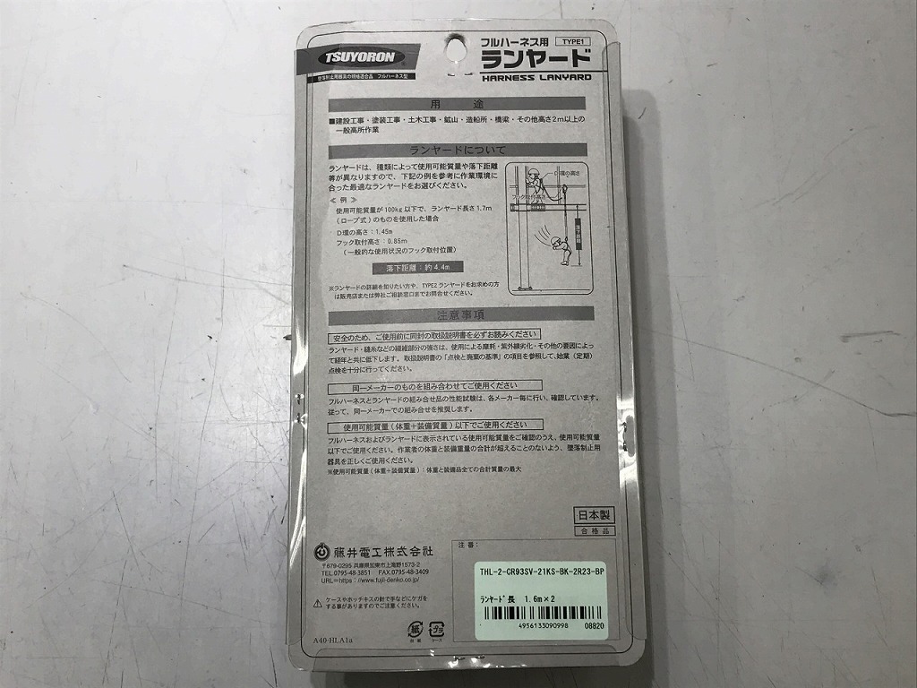 期間限定セール 【未使用】 墜落制止用器具 ツヨロン THL-2-CR93SV-21KS-BK-2R23-BP