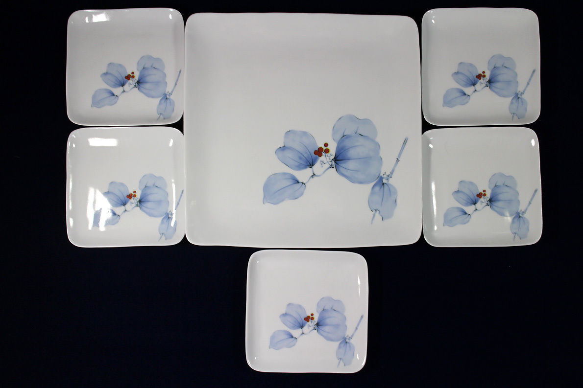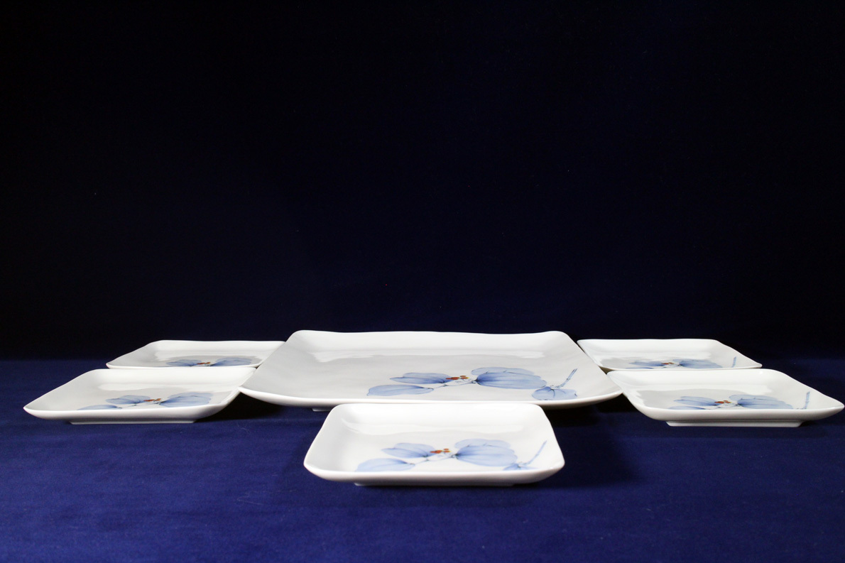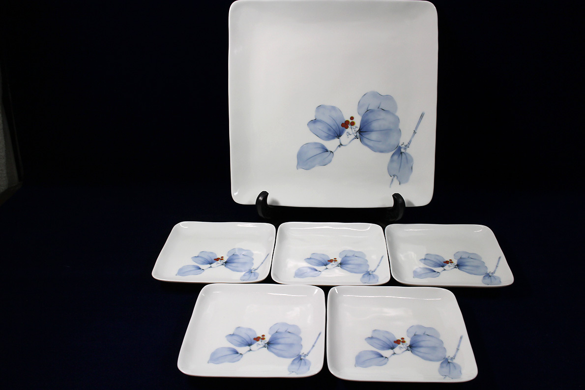 ◎[品名]香蘭社[山帰来・パーティーセット・角大皿1枚・銘々皿5枚]。