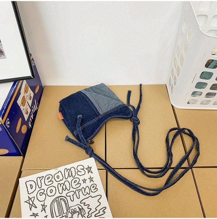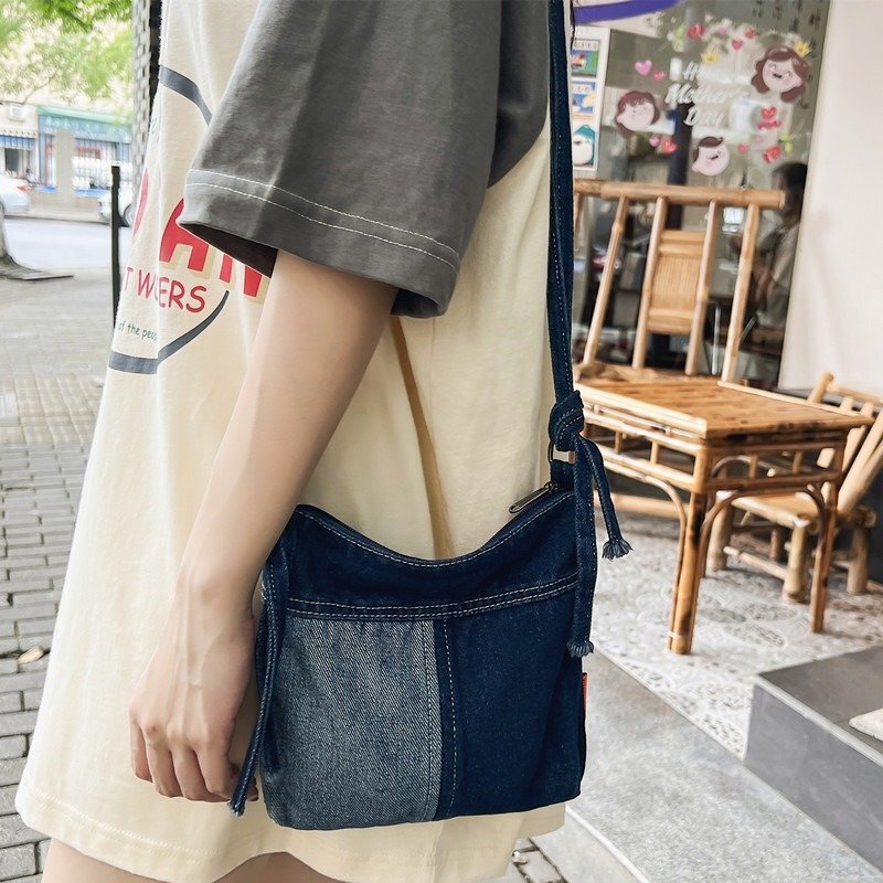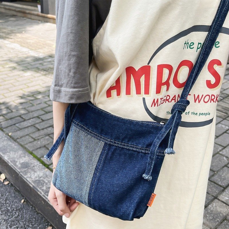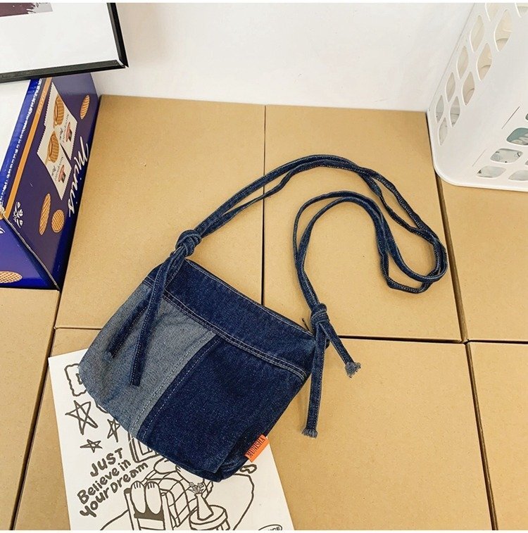 レトロ デニム ショルダーバッグ メンズ レディース 斜め掛け パッチワーク カラーマッチング メッセージバッグ 通勤 通学