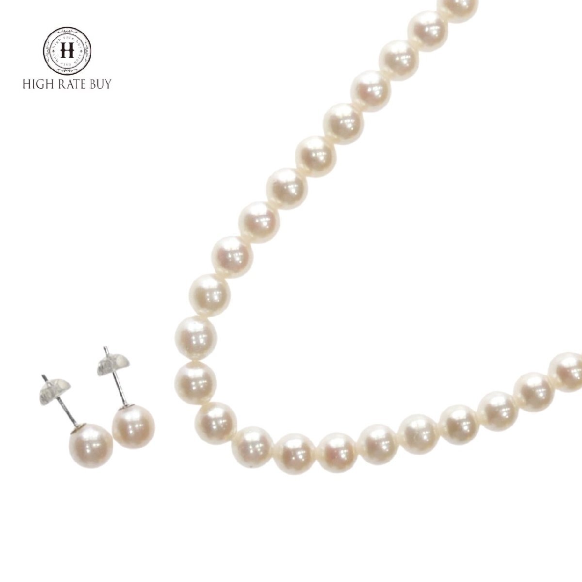 1円スタート 美品 アコヤ真珠 ネックレス イヤリングセット pearl 金具 K14WG ホワイトゴールド SILVER シルバー レディース ソーティング