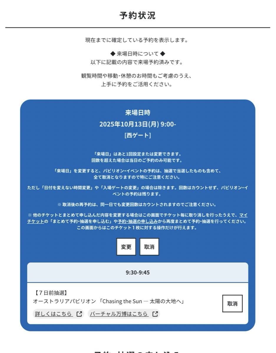 9:30~9:45 オーストラリアパビリオン 予約済み(取り消し可能です)
