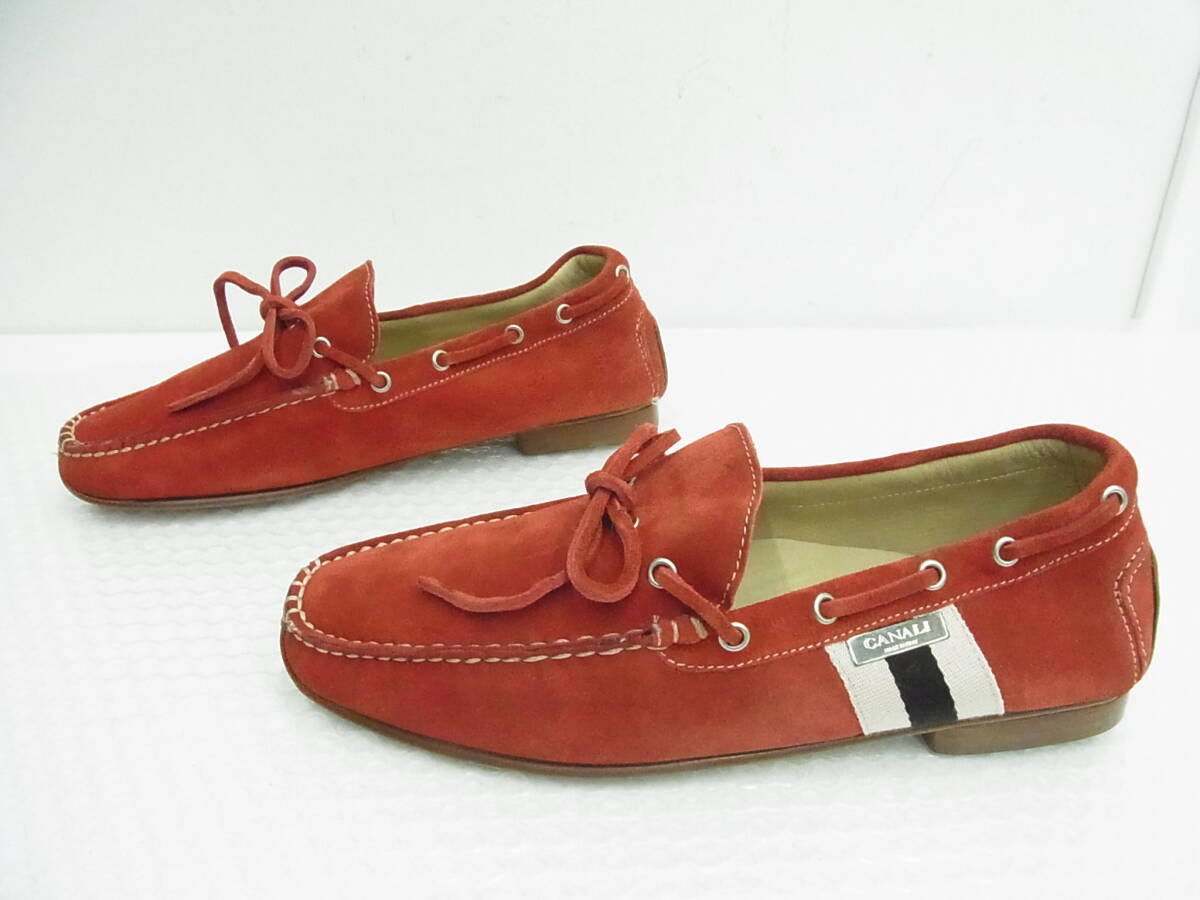 1094 ブランド祭 CANALI VERO CUOIO 411104 40 スエード シューズ デッキシューズ カナーリ ベロクオイオ イタリア産 中古品