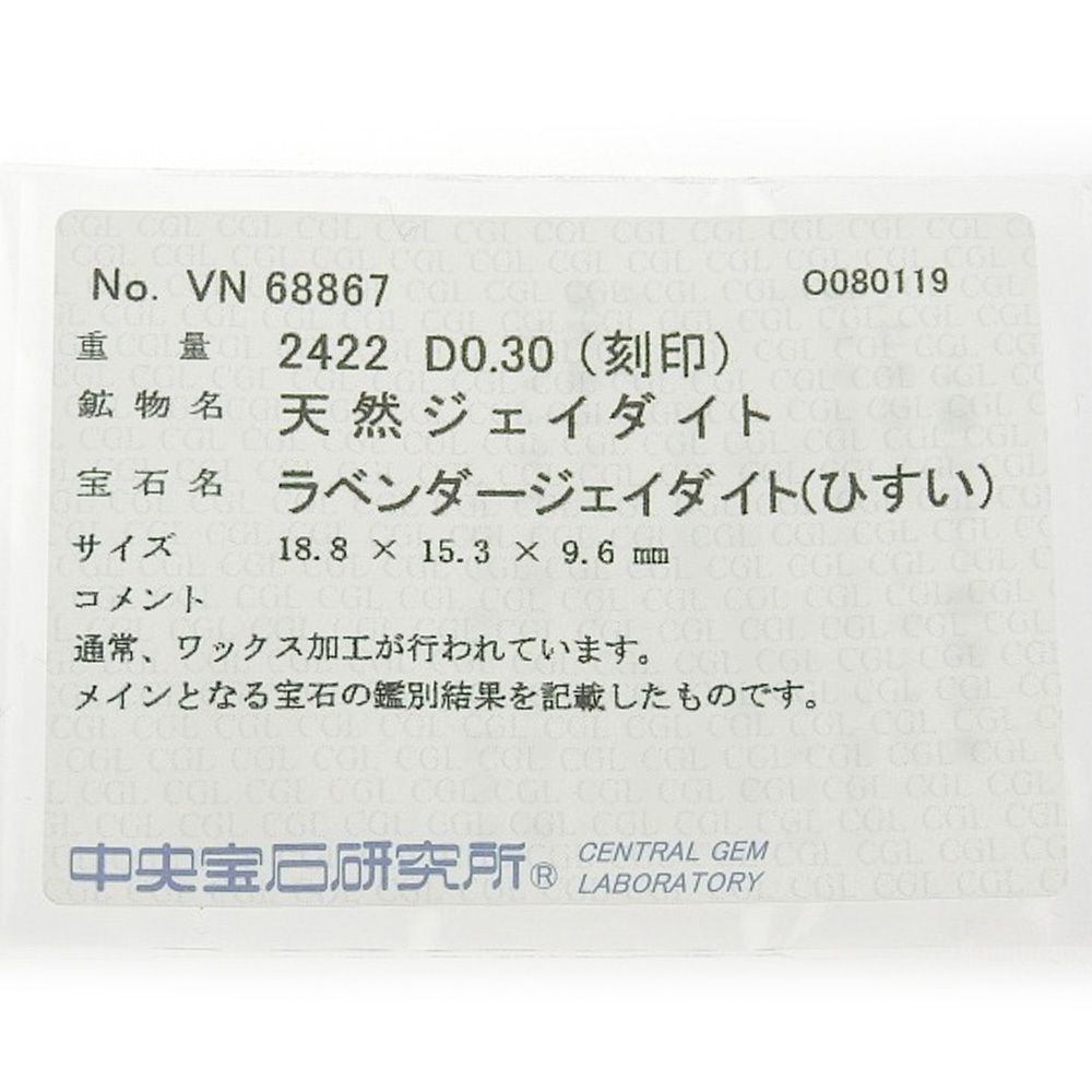 素材 | Pt900 石:ラベンダーヒスイ24.22ct ダイヤ0.30ct |