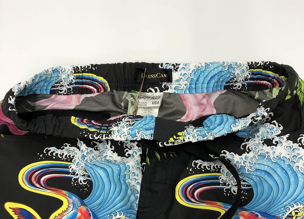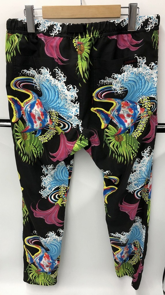 商品説明カラフルな魚の柄が入った黒地のパンツです。