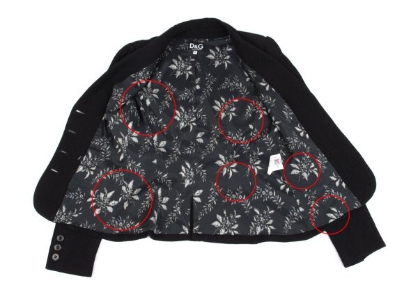 コンディション | 襟裏に薄汚れ、裏地に糸引きがあります(写真参照)。その他目立ったシミ、汚れ、ほつれ等なくいい状態です。クリーニング済み。 ※商品の詳細写真はこちらよりご確認頂けます。 |