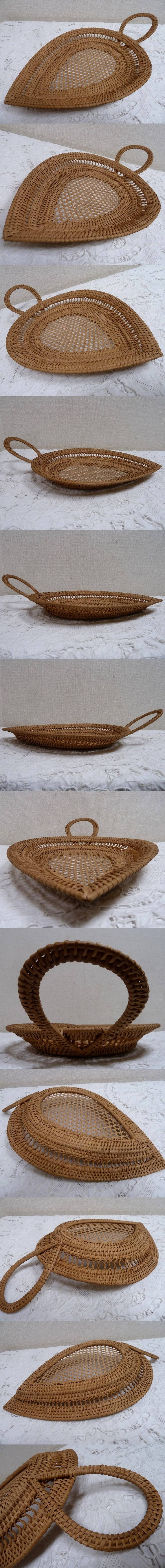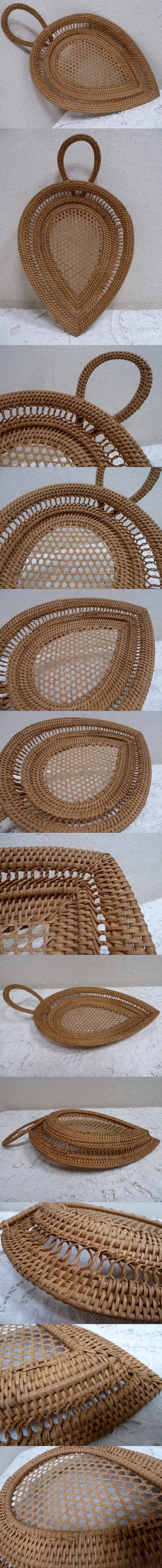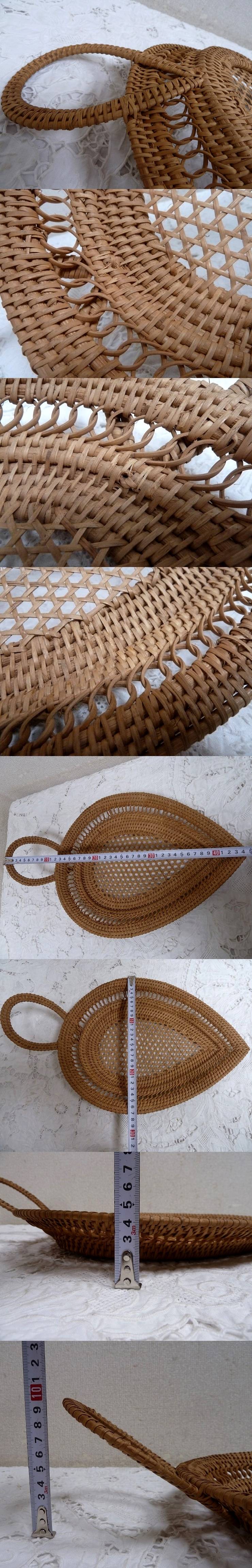 (☆BM)ドロップ型/雫型 木製 竹籠 バスケット 全長45㎝ トレイ 果物 菓子器 天然素材 レトロ
