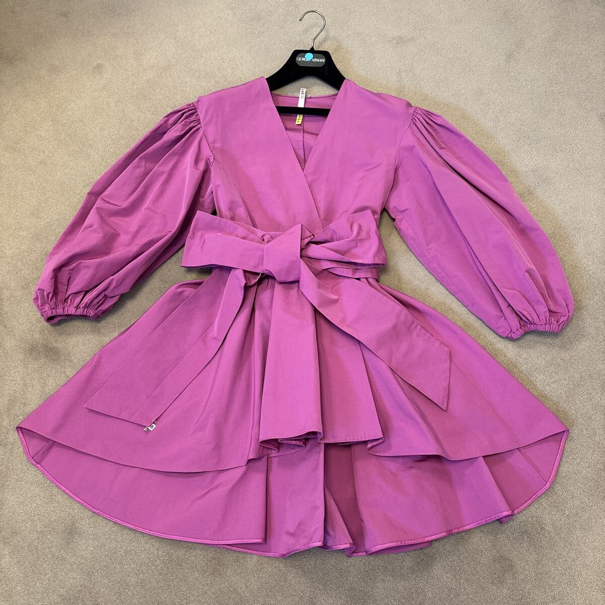 お袖がバルーンになっていて、またスカート部分のフレア具合のとても素敵な華やかなワンピースになります。