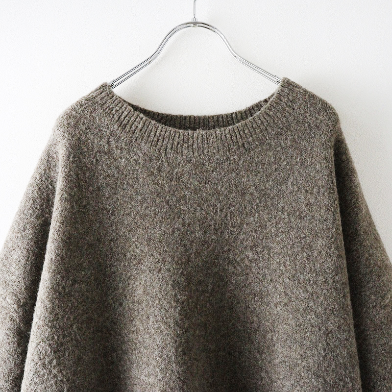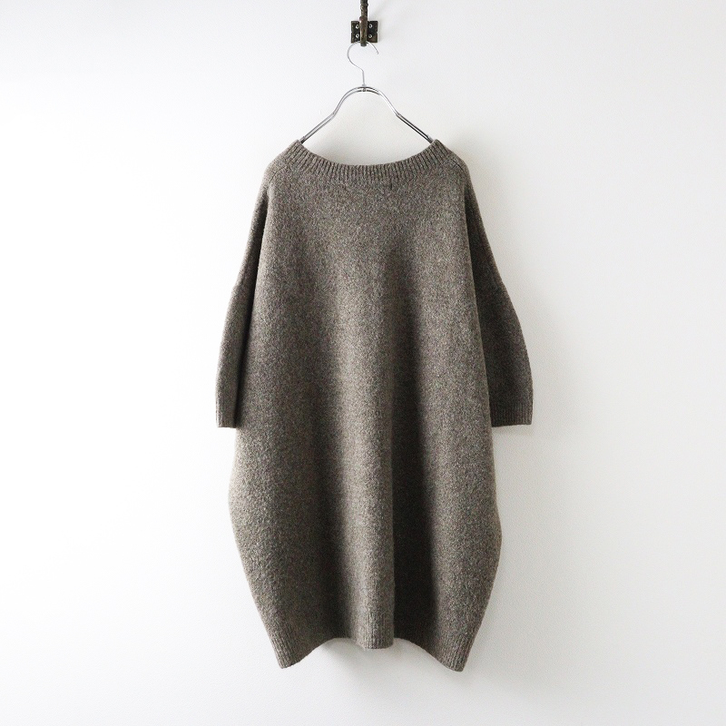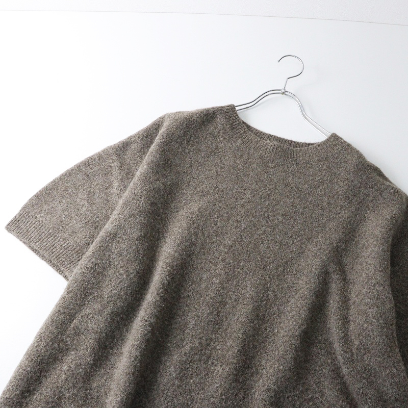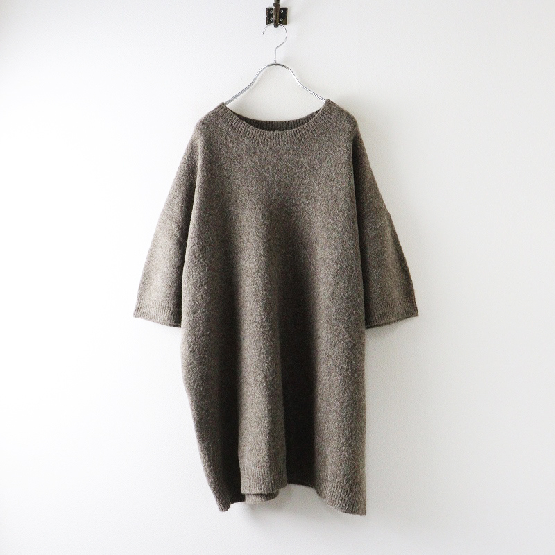 2023AW ミズイロインド mizuiro ind ハーフスリーブクルーネックチュニック\グレー ウール混 ニット ワンピース 縮絨【2400014637519】