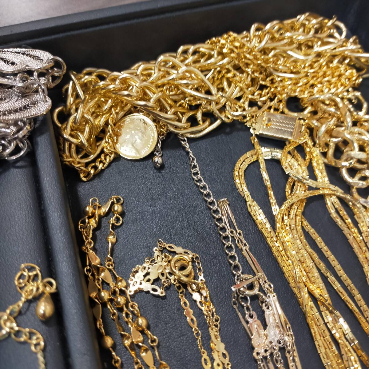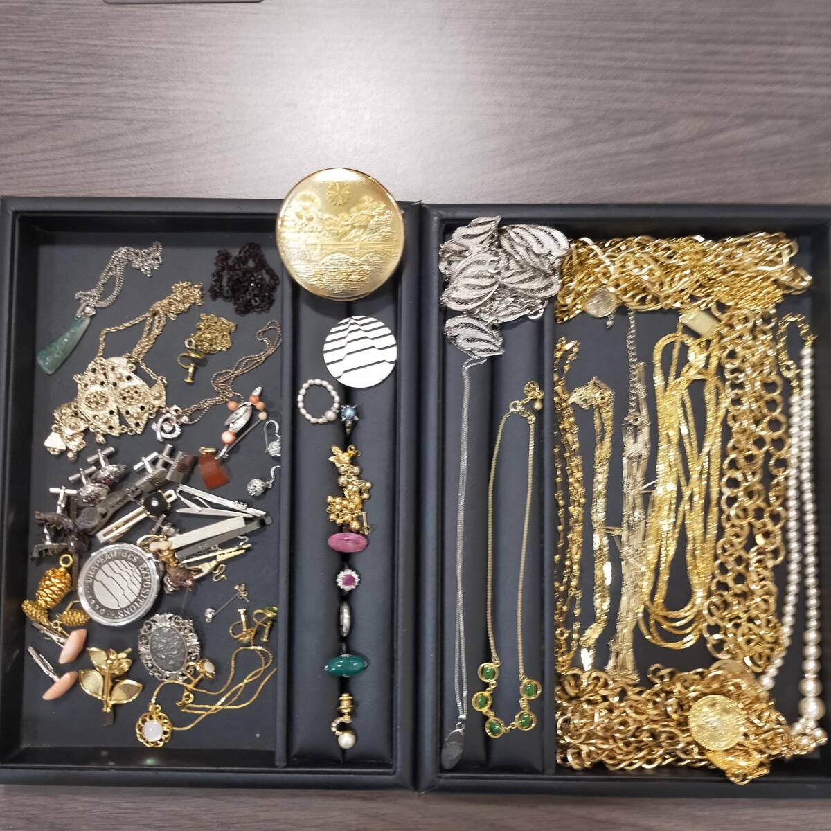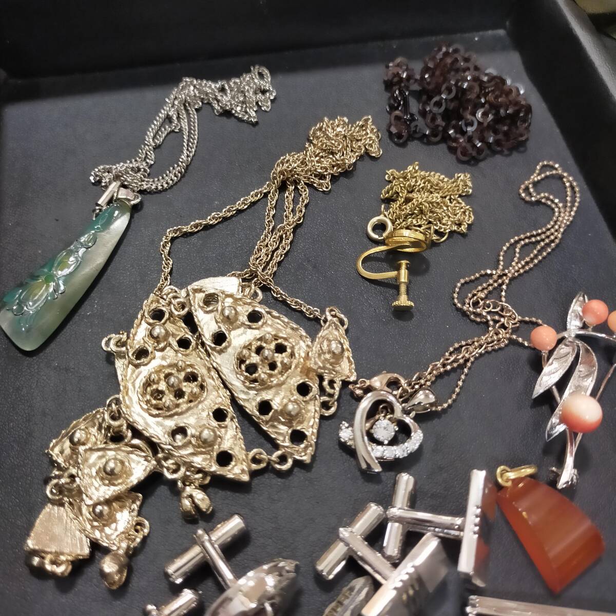 【お宝 メッキアクセサリーまとめ】 リング ネックレス ネクタイピン カフス イヤリング等 約800g コレクション マニア #2492A | ||