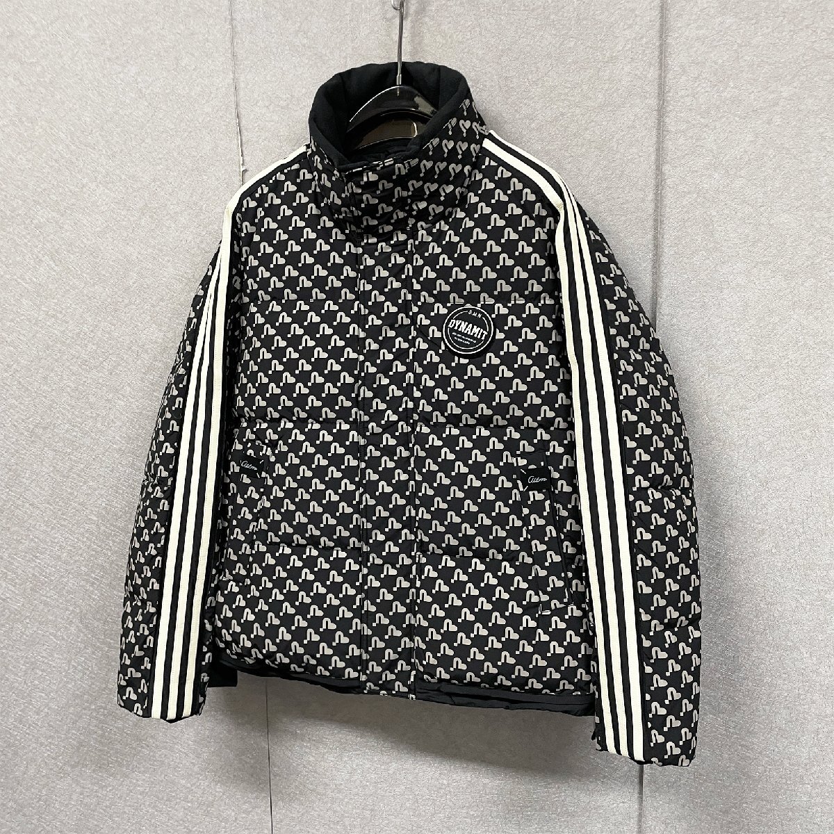 ダウンジャケット イタリア製造 ダックダウン90% ふんわり 保温 軽量 ソフト 総柄 ストライプ柄 立ち襟 個性 ジャンパー ディリー SIZE:L