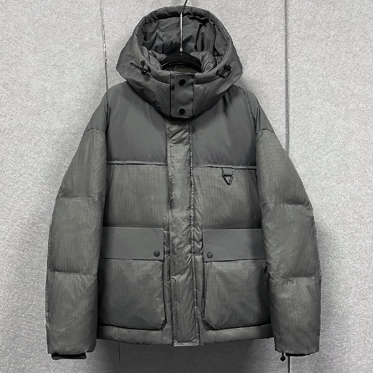 ダウンジャケット イタリア製造 ダックダウン90% 防寒対策 保温 ふんわり 個性 総柄 フード付き アウター ジャンパー 通勤 通学 SIZE:2XL