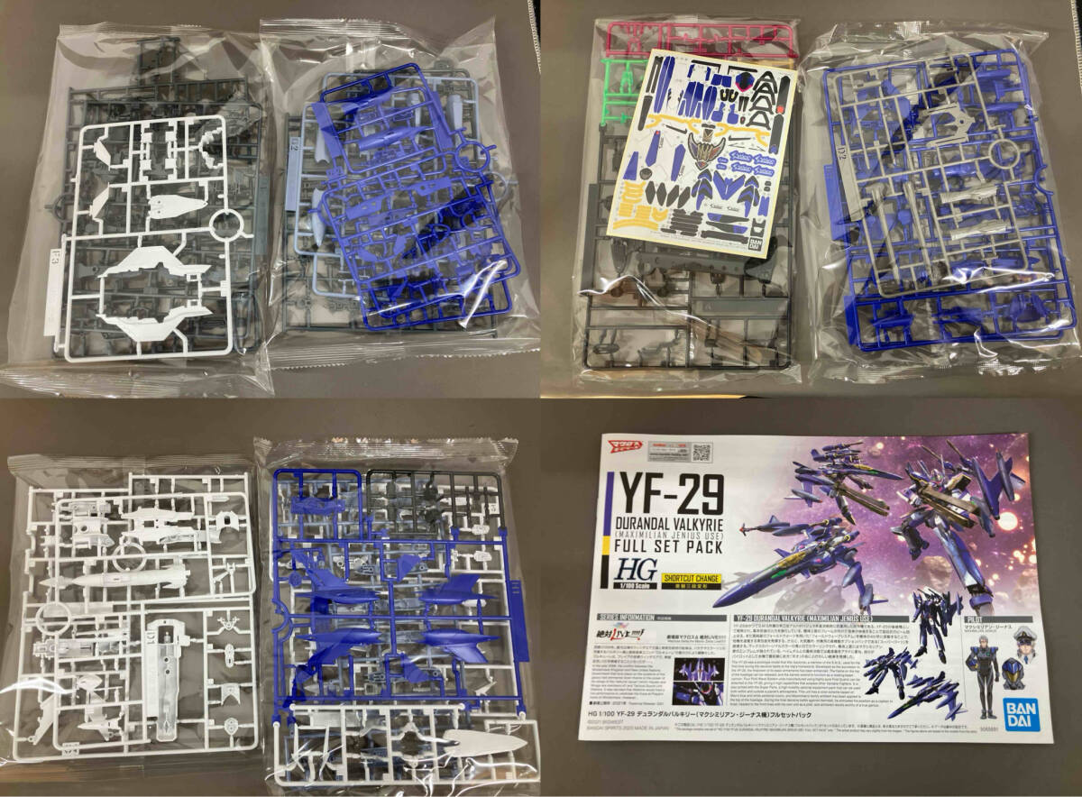 【セット内容】ガンポッド、シールド、ナイフ、ミサイル展開用パーツ(左右)×2、ランディングギア×1式、フォールドウェーブプロジェクター展開用パーツ×2、ファイター形態再現用パーツ×1式、ジョイントパーツ×1式、ハンドパーツ×1式、台座、ネーマーシール |