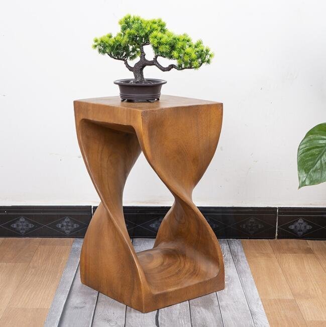 多機能★アンティーク調 レトロ チーク 木製 椅子 花台 家庭用