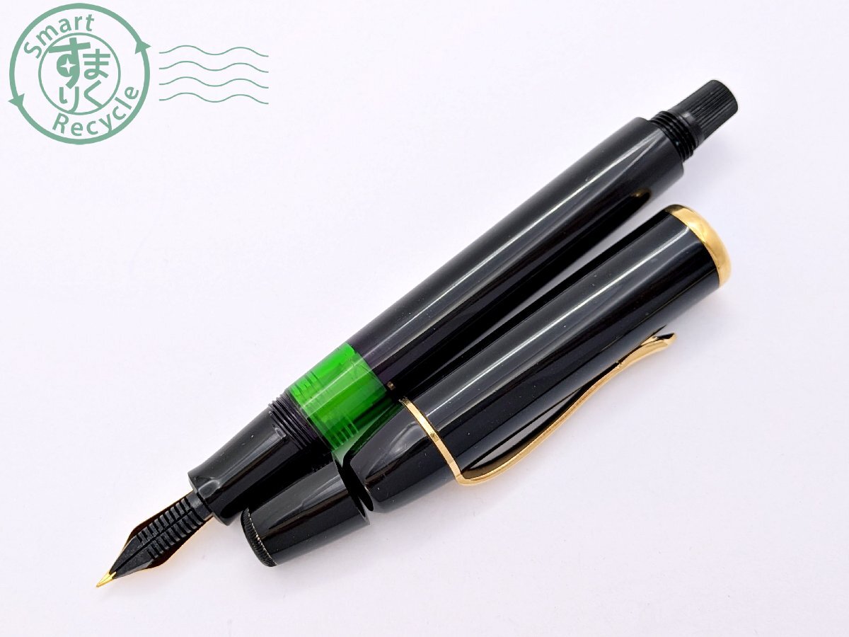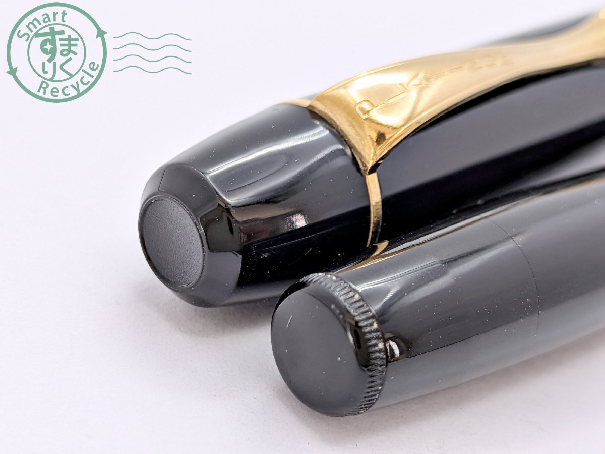 ★ PLATINUM プラチナ 万年筆 吸入式 ペン先 F 刻印 ゴールドカラー ブラック 筆記用具 文房具 中古 | |||