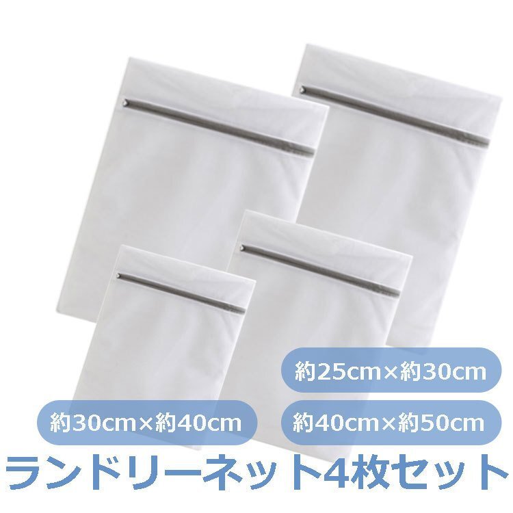 ◆ランドリーネット4枚セット 絡み防止 傷み防止 メッシュ素材 ファスナーポケット付き LAUSMSET4/約30cm×約40cm 2枚+約50cm×約60cm 2枚