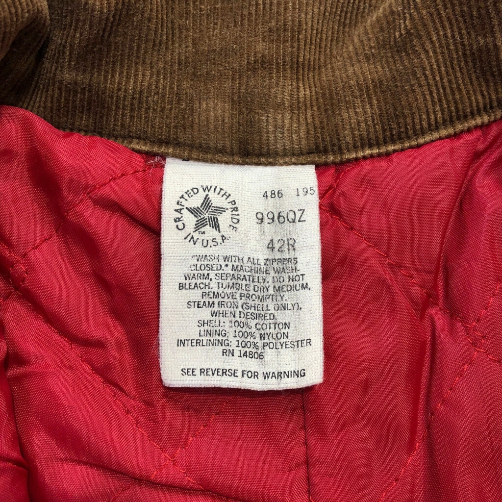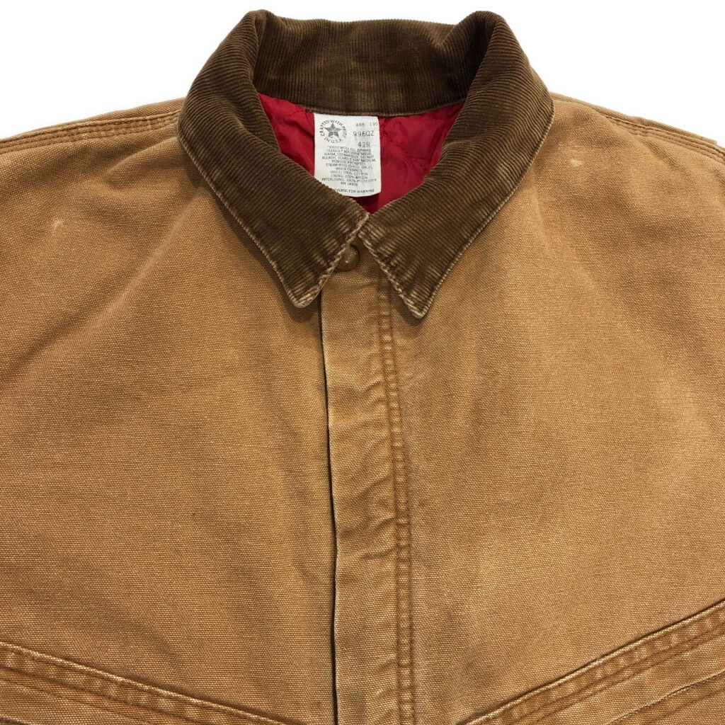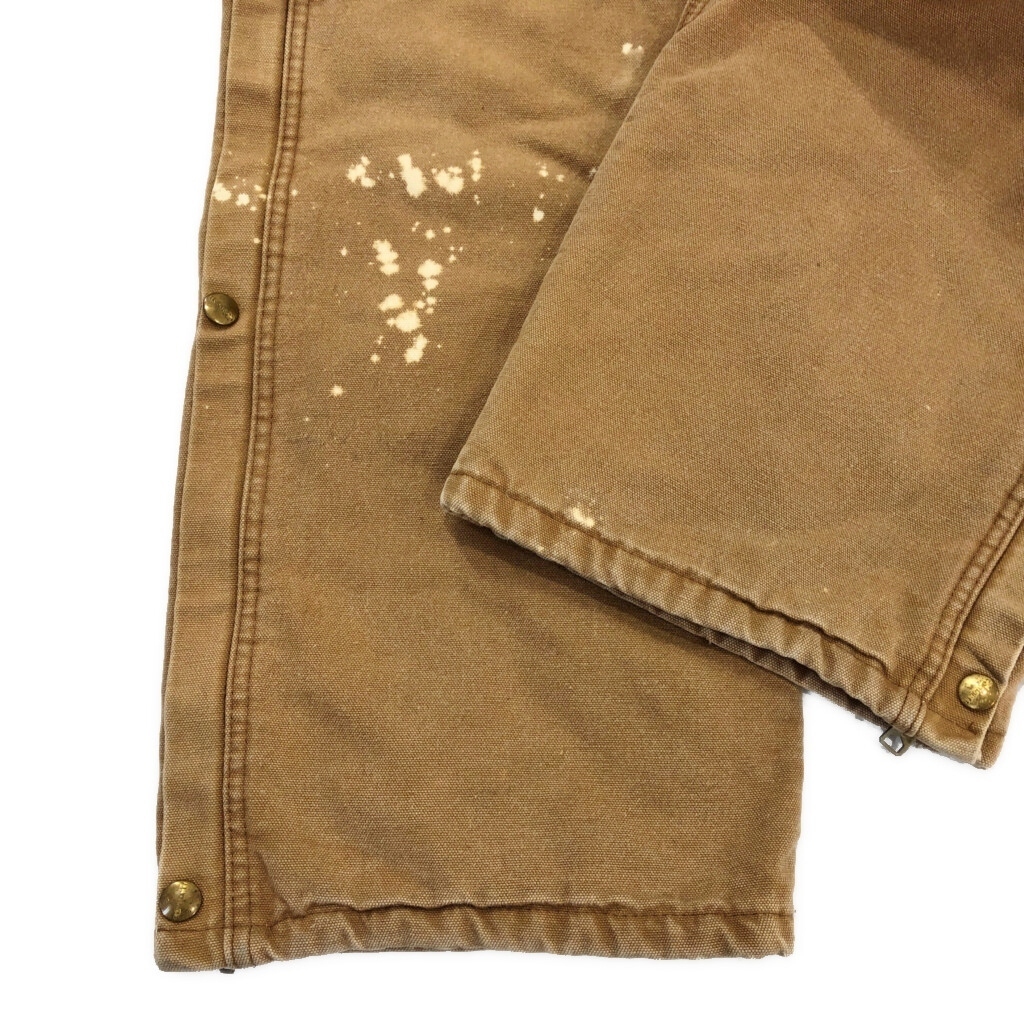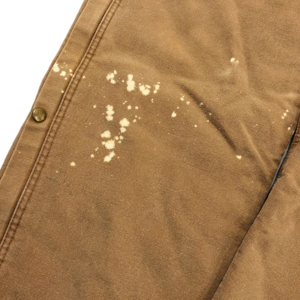 【商品管理番号】 V0757 【ブランド】 Carhartt/カーハート 【サイズ】 42 R 【実寸サイズ】 総丈:約161cm 肩幅:約51cm 身幅:約61cm ウエスト:約102cm 股下:約71cm わたり幅:約38cm 裾幅:約25cm 袖丈:約62cm 【主な素材】 表地 : コットン 裏地 : 13848 中綿 : 13897 【色】 ライトブラウン 【仕様】 生産国 : USA製 80年代 裏地キルティング 【状態】 汚れ:袖、袖先、裾、もも、スネ ブリーチ飛び 特記事項:変色、色褪せ |