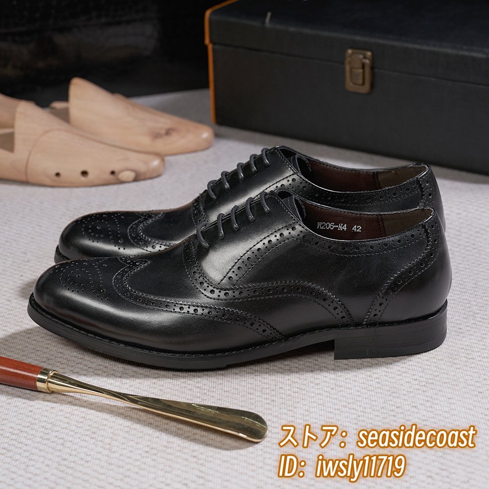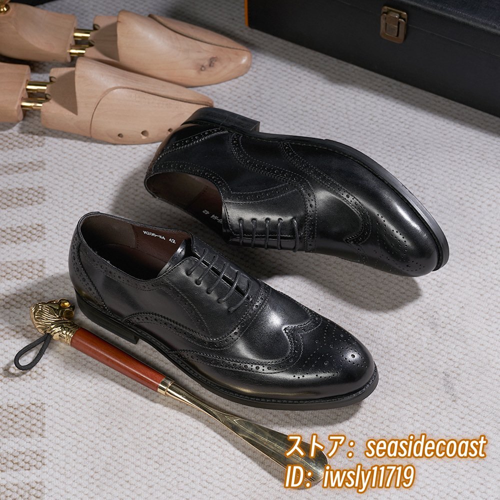 超希少■メンズ レザーシューズ 本革 スリッポン 最高級 職人手作り 彫り ビジネスシューズ 革靴 紳士靴 牛革 フォーマル ブラック 24.5cm