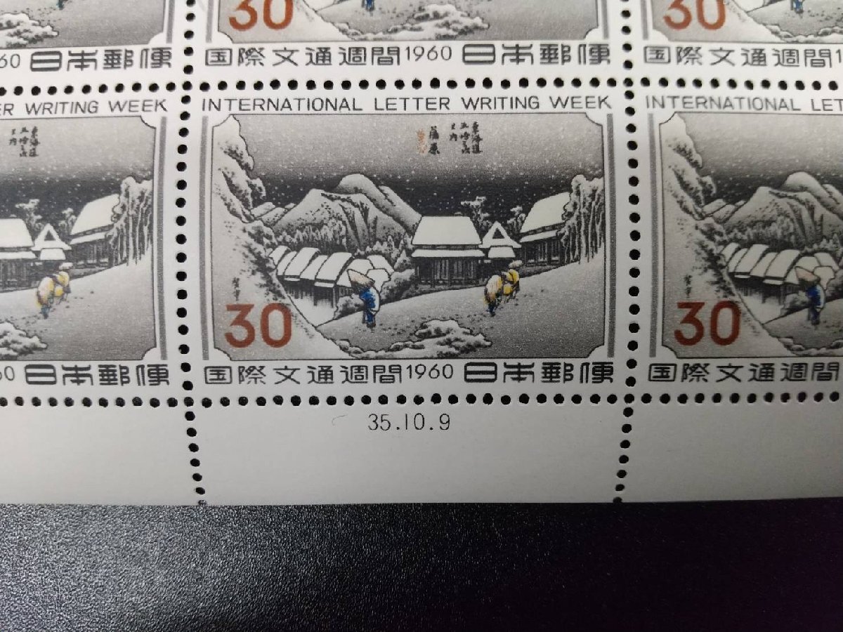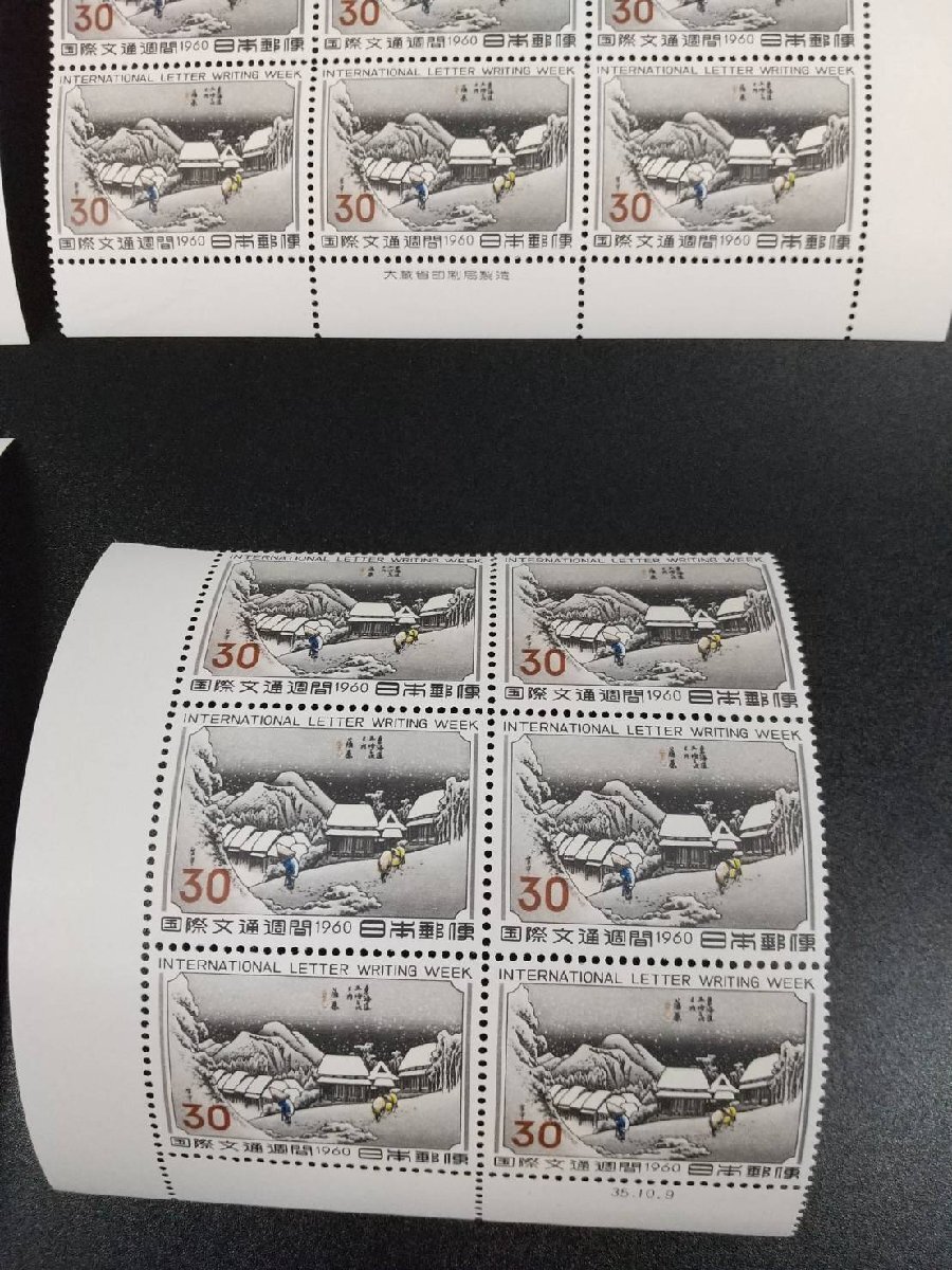 ご覧いただきありがとうございます。 コレクター放出 未使用 切手 1960年 国際文通週間 蒲原 30円×20枚 切手シート 2枚+ブロック でございます。 ※撮影時の光源の影響や、PCの画面設定の関係で 色味が違って見える場合がございます。 30円×20枚の切手シート 2枚 1200円 30円×12枚 360円 30円×6枚 180円 総額1740円です。 状態は、経年保管により曲がり、シミがございます。 未確認箇所の不具合を理由とする返品・値引き交渉 には応じかねますのでご理解ご了承頂いた上でのご入札を 宜しくお願い致します。 ※専門知識に乏しい為、専門的なご質問にはお答え 出来ない場合がございます。 配送方法について問い合わせが多くなっております が、商品ページに記載している配送方法以外はお受けし かねますので、予めご了承の程お願い致します。 この商品は、中古品での出品になりますので 神経質な方、完璧な状態をお求めの方は入札をお控え 下さい。 落札後は、迅速にお手続き出来る方のみお願い致します。 | ||||||||||||||||||