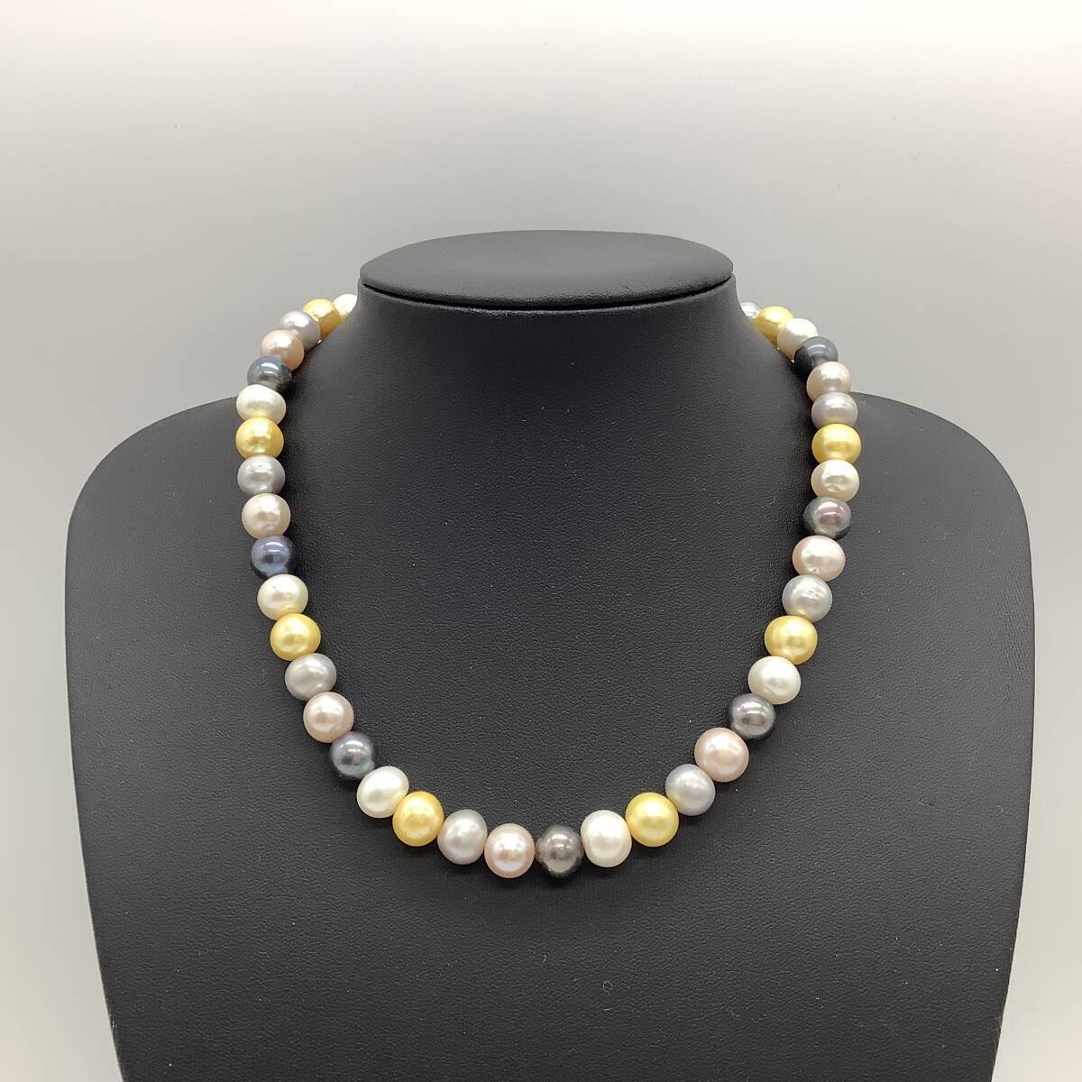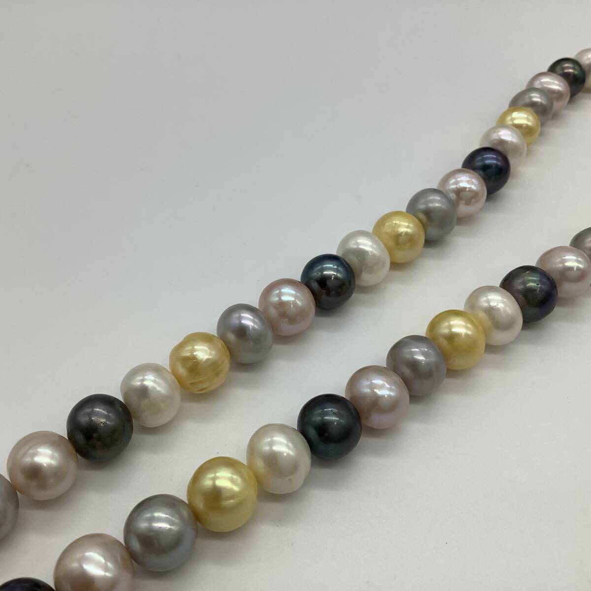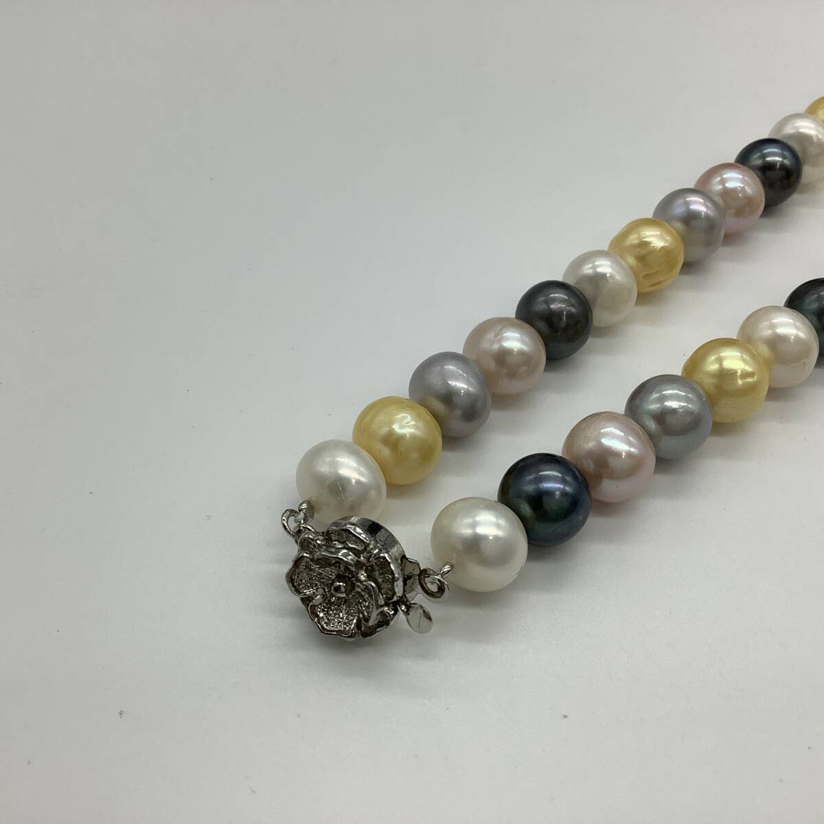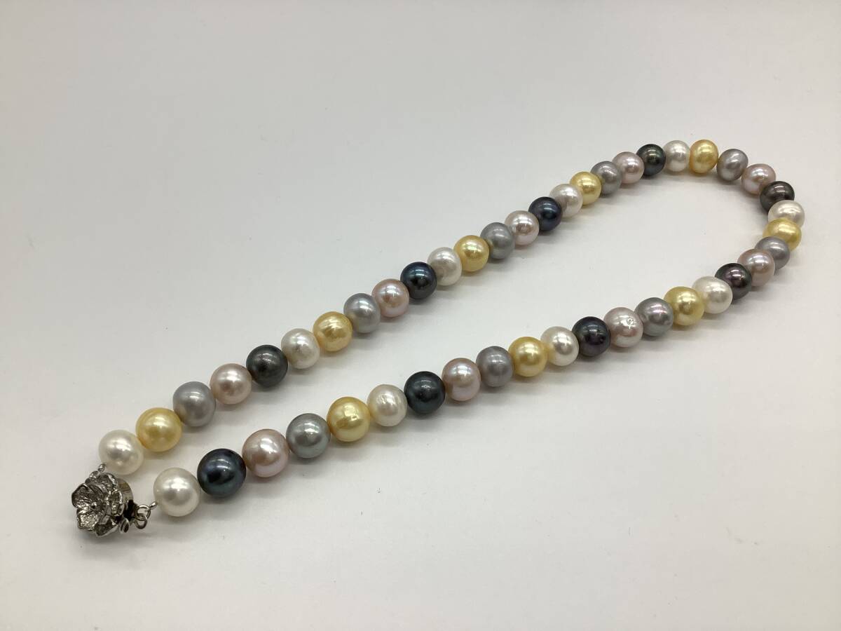 n3407 パール ネックレス SILVER刻印 マルチカラー 約9.8-10.2mm レディース アクセサリー 真珠 マルチ 中古 保管品
