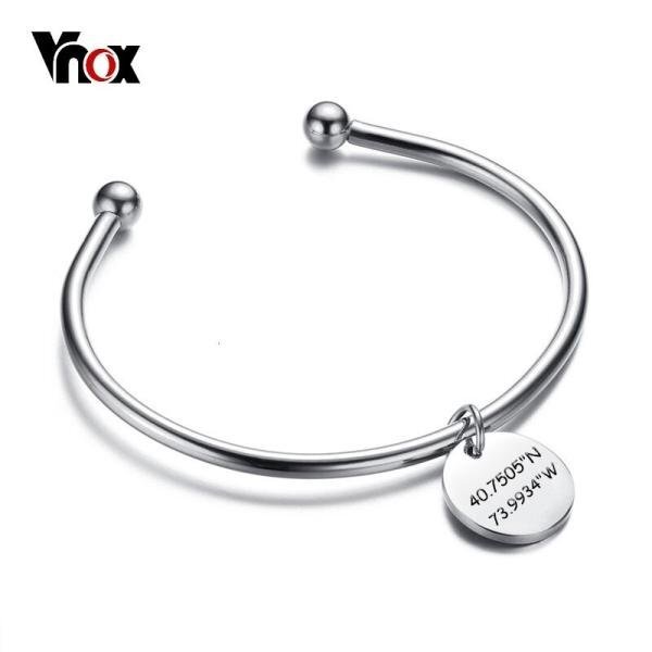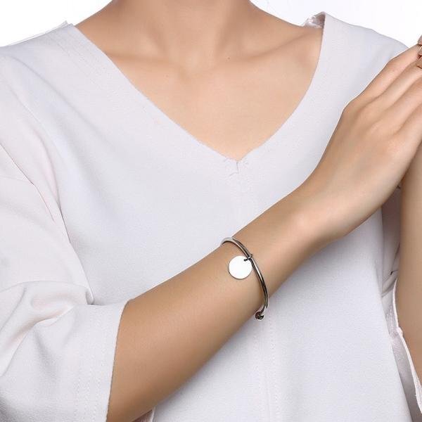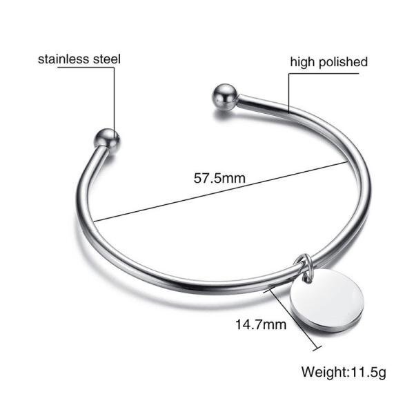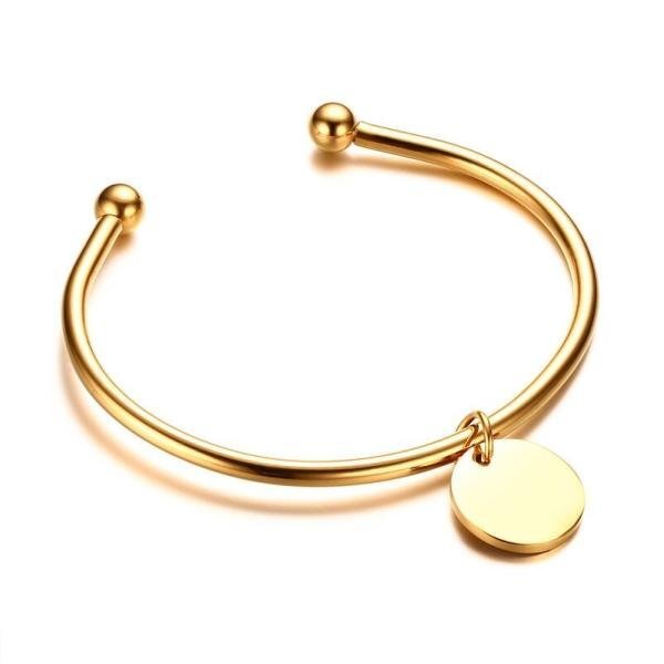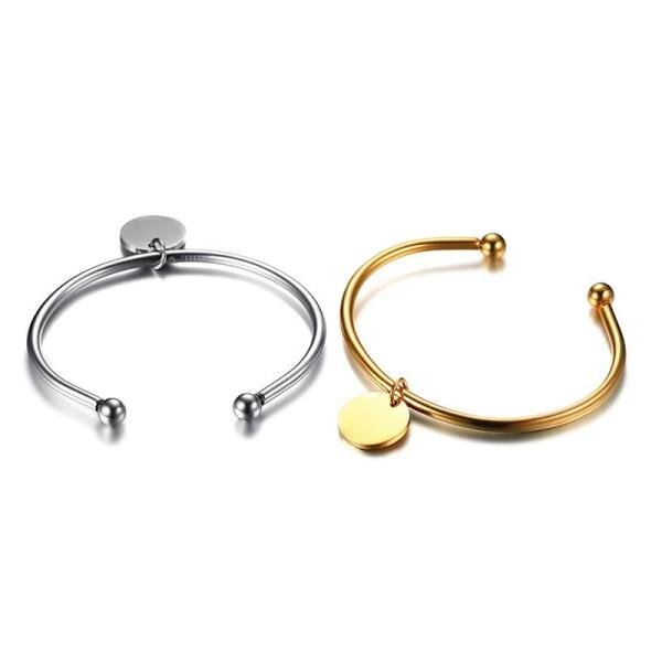 ラウンド チャーム レディース 刻印 レディ カフ バングル シルバー ゴールド カラー ステンレス ブレスレット ジュエリー