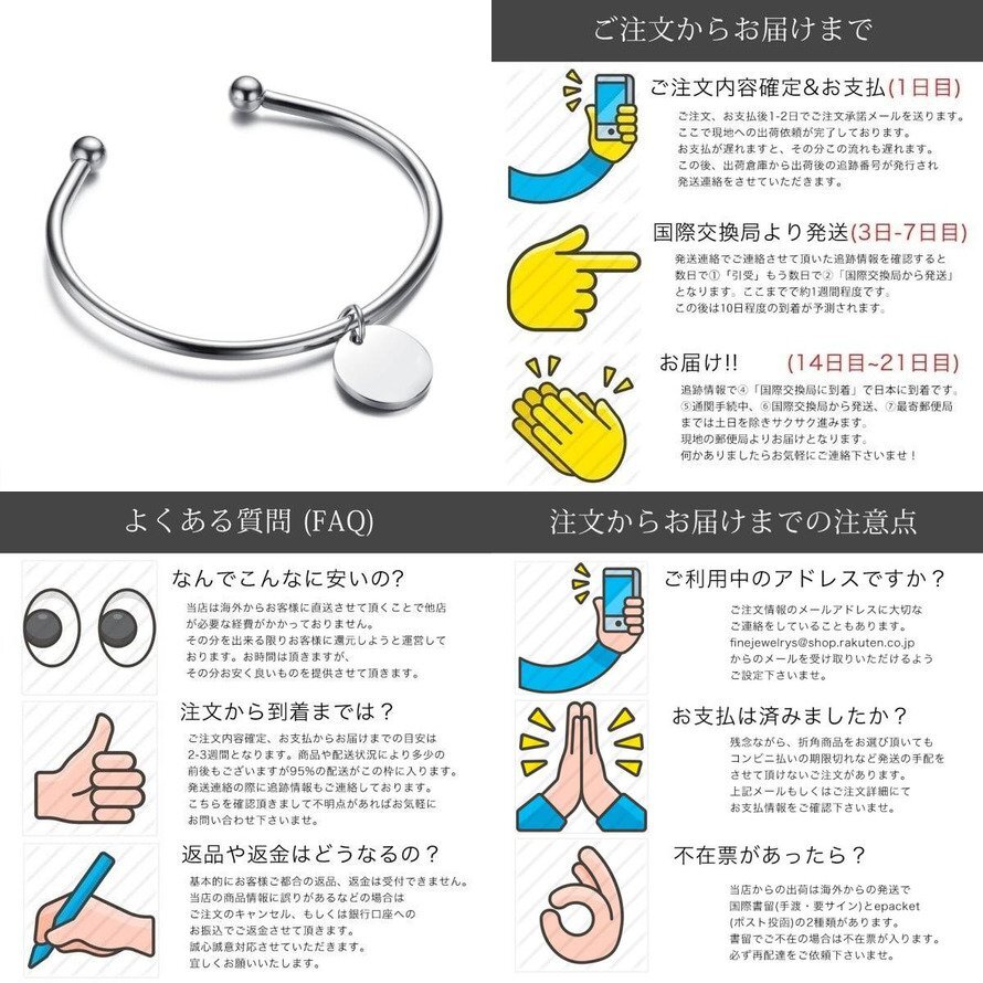 <font size=2>商品や配送についてご不明な点がございましたら、お気軽にお問い合わせください。精一杯回答させていただきます! バリエーションの選択は購入画面で選択頂きますがデザインの選択がある場合は上記画像からデザインをお選びくださいませ。商品ページにて選択肢をご用意出来ていない商品についてはご購入いただいた後、確認メールにてバリエーションの確認をさせていただきますので、ご回答くださいませ。または事前にお問い合わせいただければ、都度商品ページを更新させていただきます。</font> |
