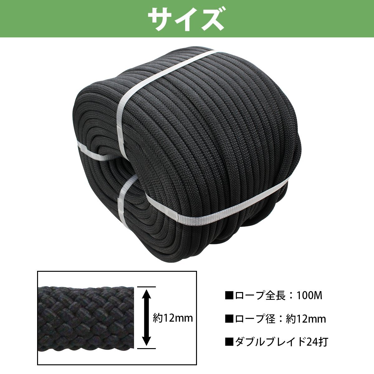 24打 12mm 100m 係留ロープ フェンダーロープ ダブルブレイド 黒/ブラック マリン ロープ 船 係船 ロール 12ミリ アイ加工無