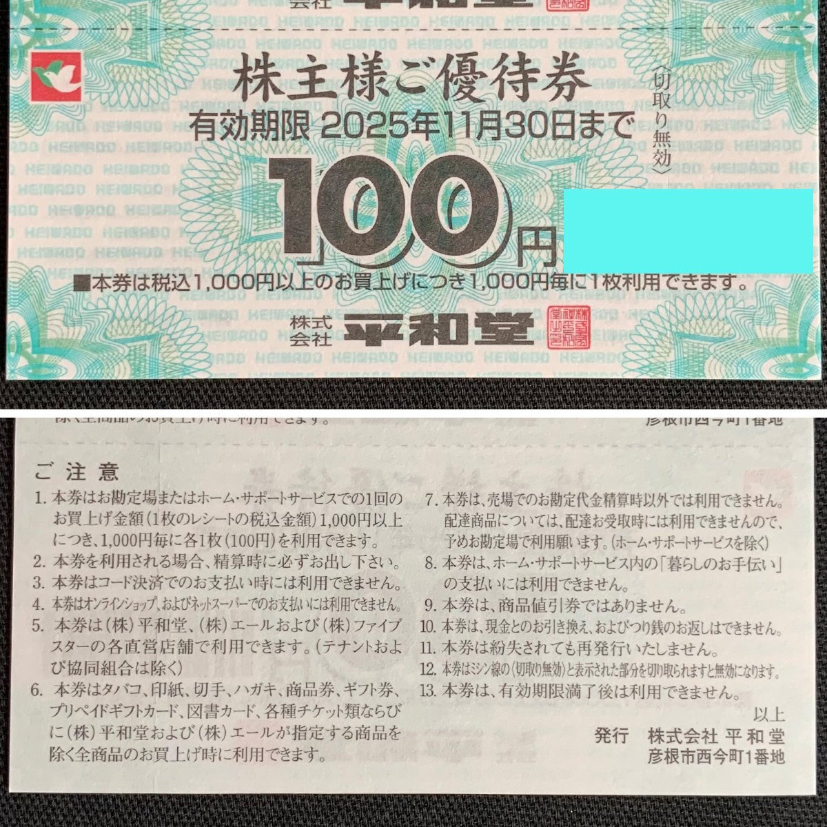 FR6e [送料無料/48時間以内決済] 株式会社平和堂 株主様ご優待券 100円 ×100枚 1冊 計10,000円分 2025年11月30日まで