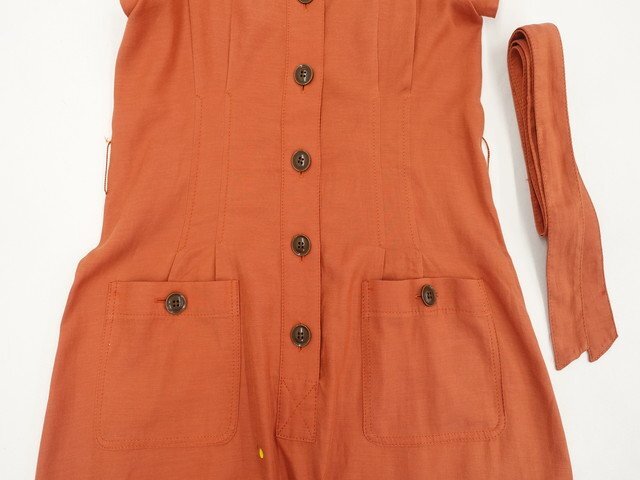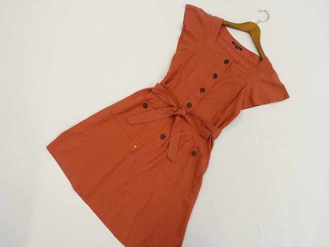 ひざ丈 半袖 スクエアネック ワンピース 32 テラコッタ 【メール便可】