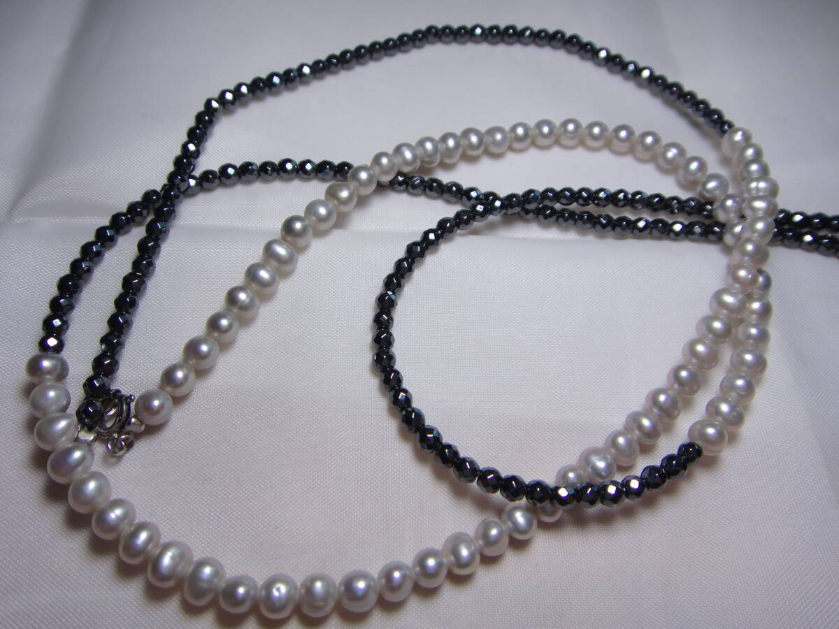 本真珠 本パール 淡水パール×ヘマタイト ロングネックレス SILVER925刻印 STERLING刻印 ヴィンテージ Y818