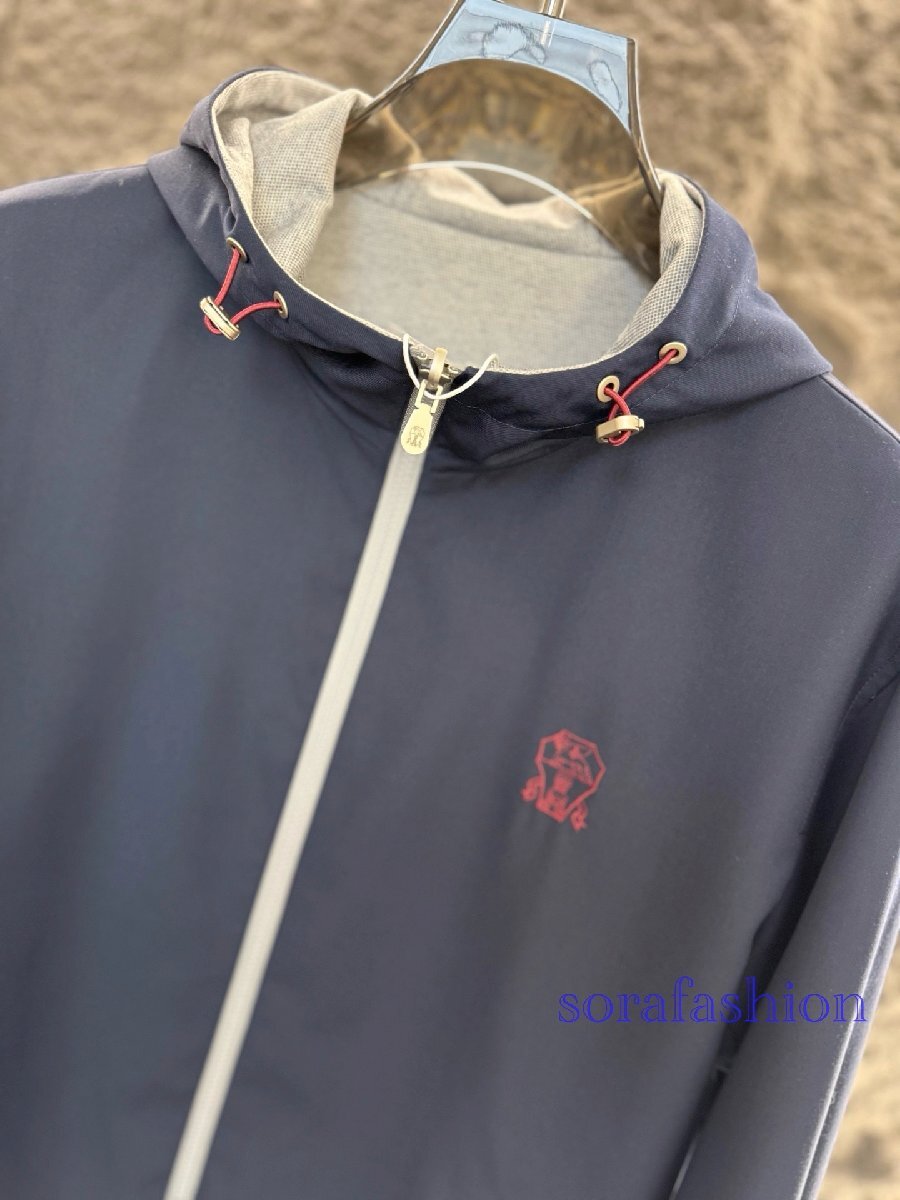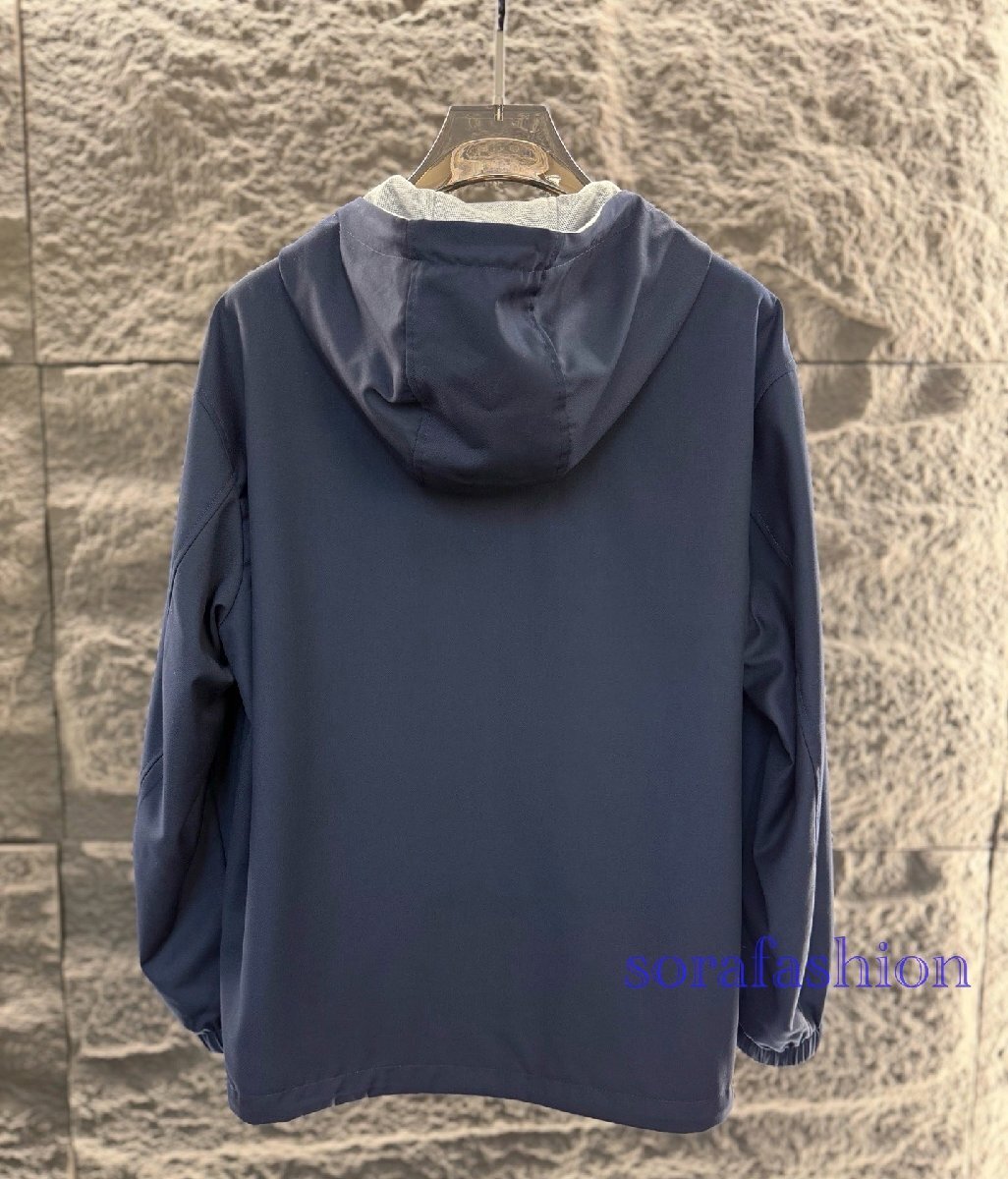 BRUNELLO CUCINELLI メンズリバーシブルジャケット マウンテンパーカー ブルゾン ネイビー 56 ジップアップ ジャンパー 両面着 ウール