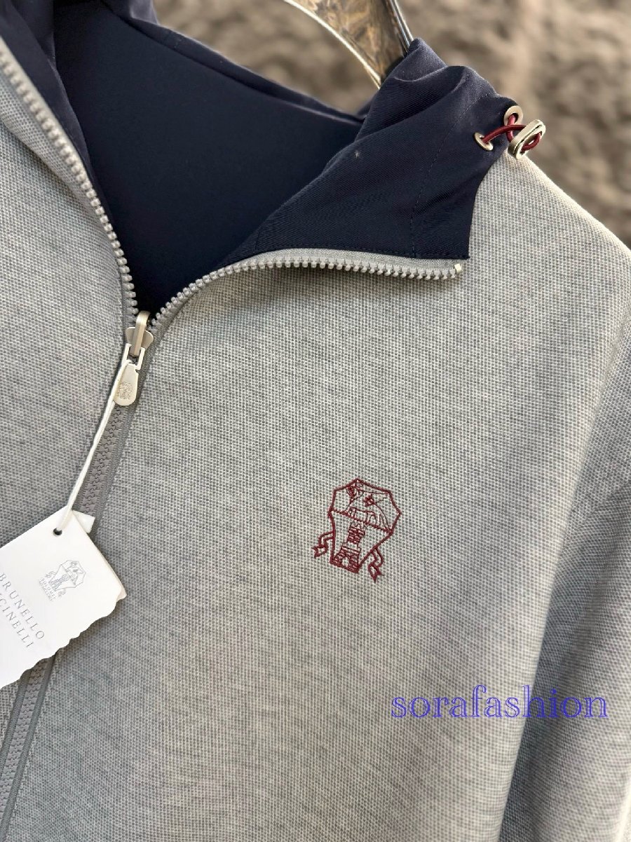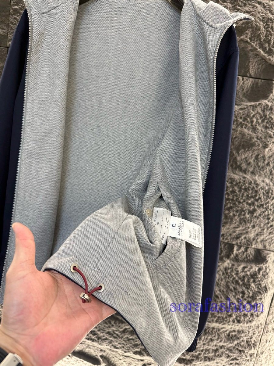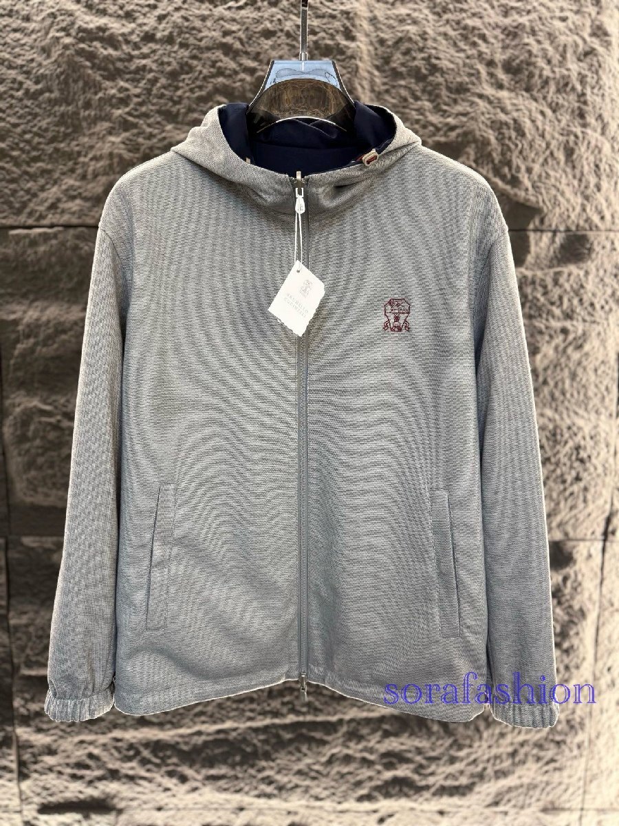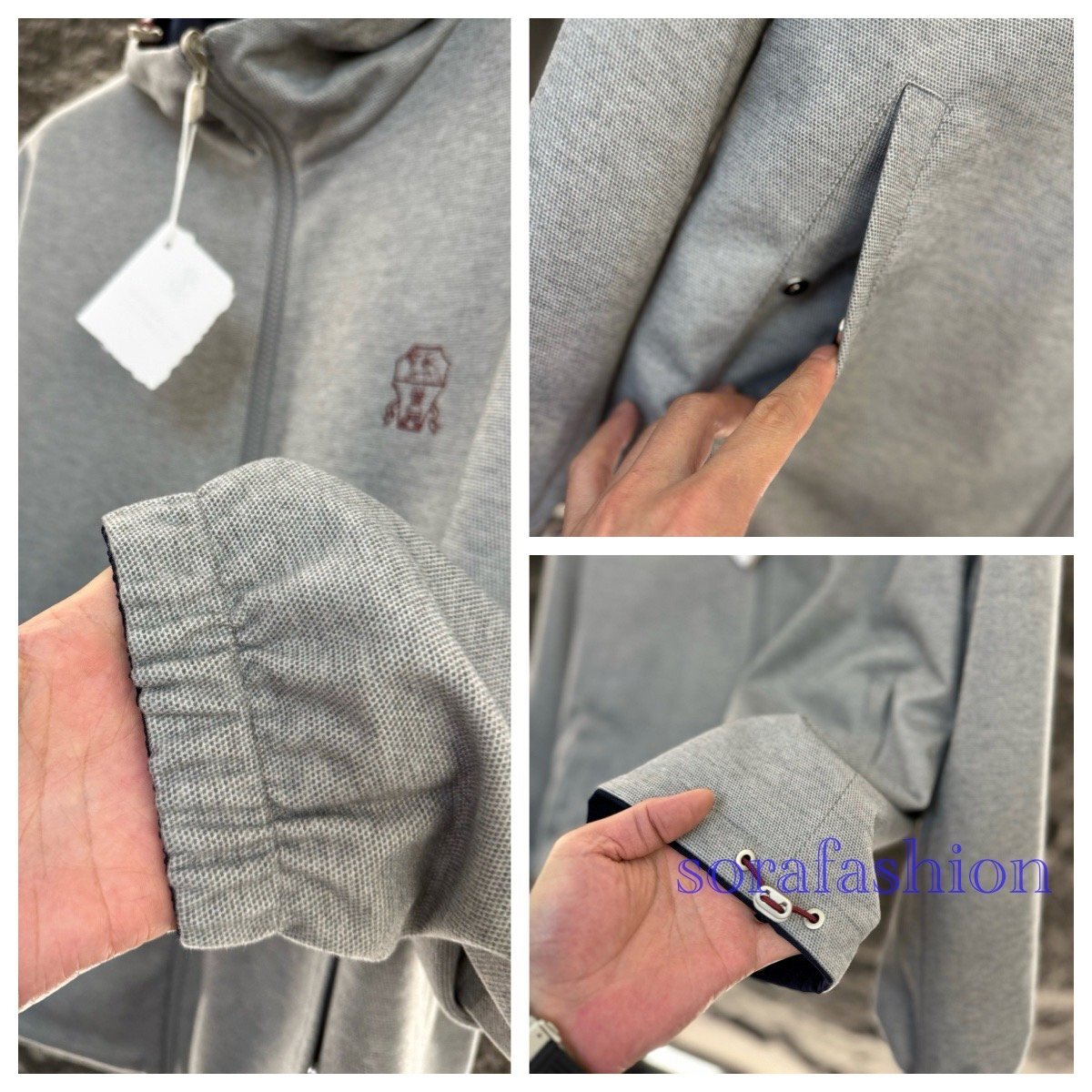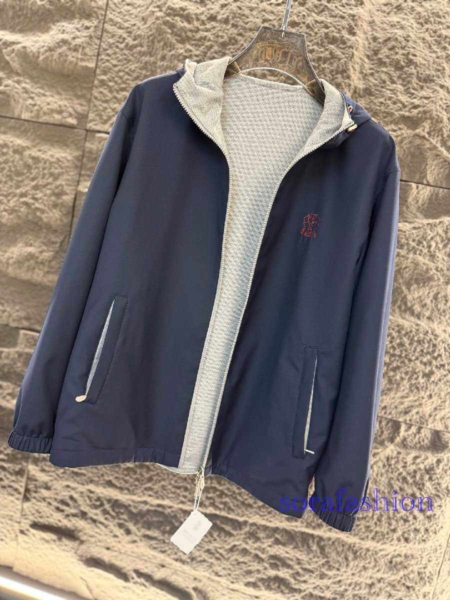 ブルネロクチネリ Brunello Cucinelli メンズリバーシブルジャケット ジャンパー 長袖 ジップアップ イタリア ミリタリージャケット フライトジャケット ジャンパー アウター 防風 紳士服 ウール 秋物 ネイビーxグレー
