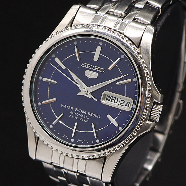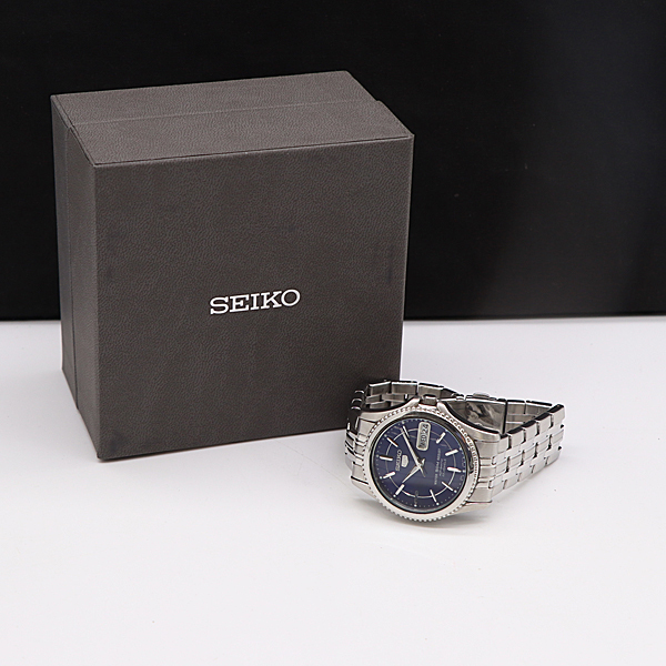 1円 箱付 稼働 良品 セイコー 7S36-01T0 ファイブ ブルー文字盤 メンズ腕時計 0506000 9ERT KMR