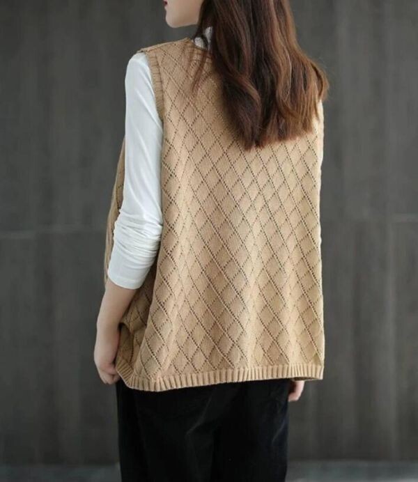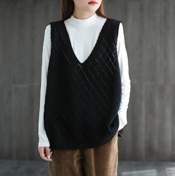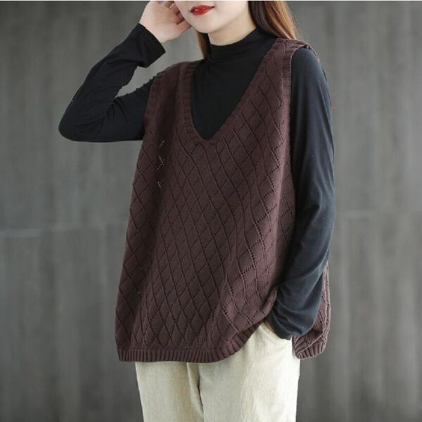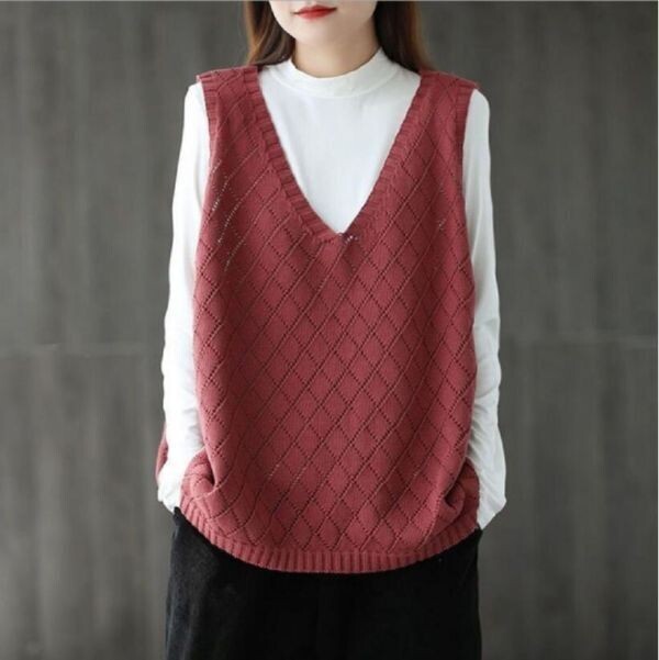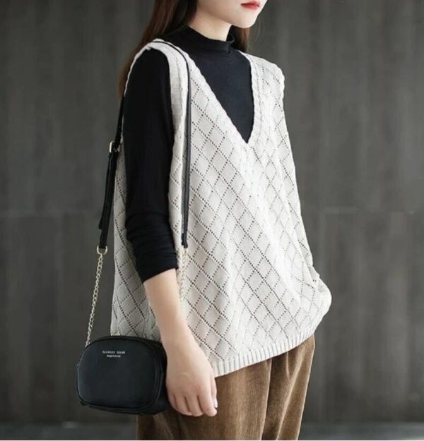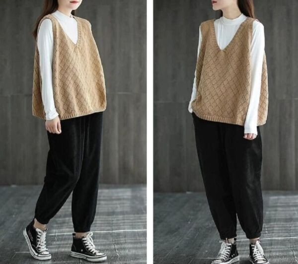 新品 秋 冬 新品 ニットベストレディースチョッキトップス Vネックノースリーブゆったりプルオーバーベストセーターベージュ