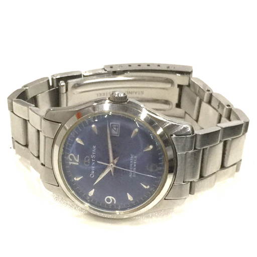 オリエントスター デイト 自動巻き 腕時計 597302-70 メンズ ブルー文字盤 稼働品 社外ブレス ORIENT STAR |