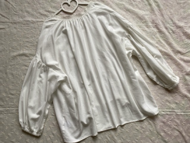 ドロップショルダーにはたっぷりギャザーのぽわん袖も可愛いですよ。