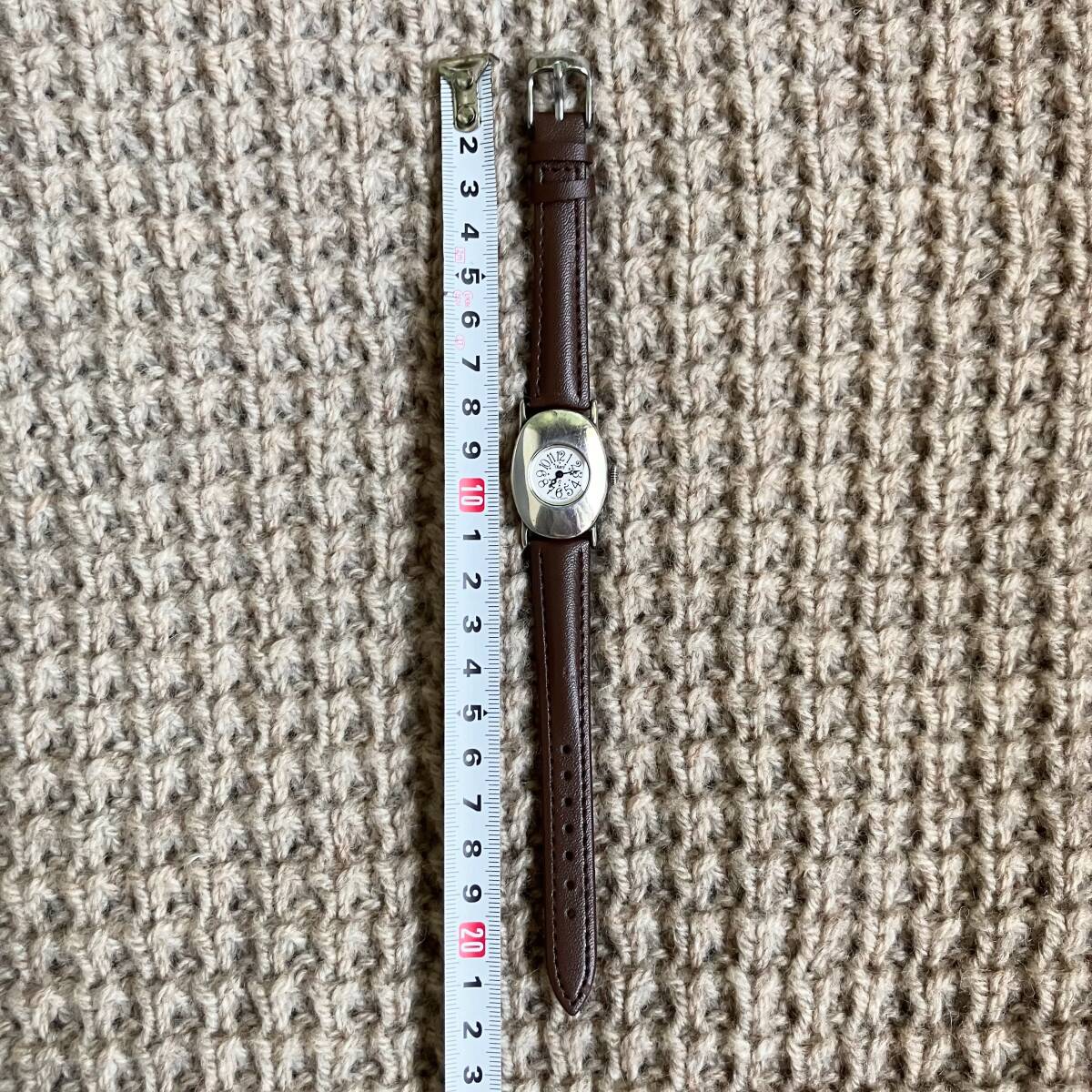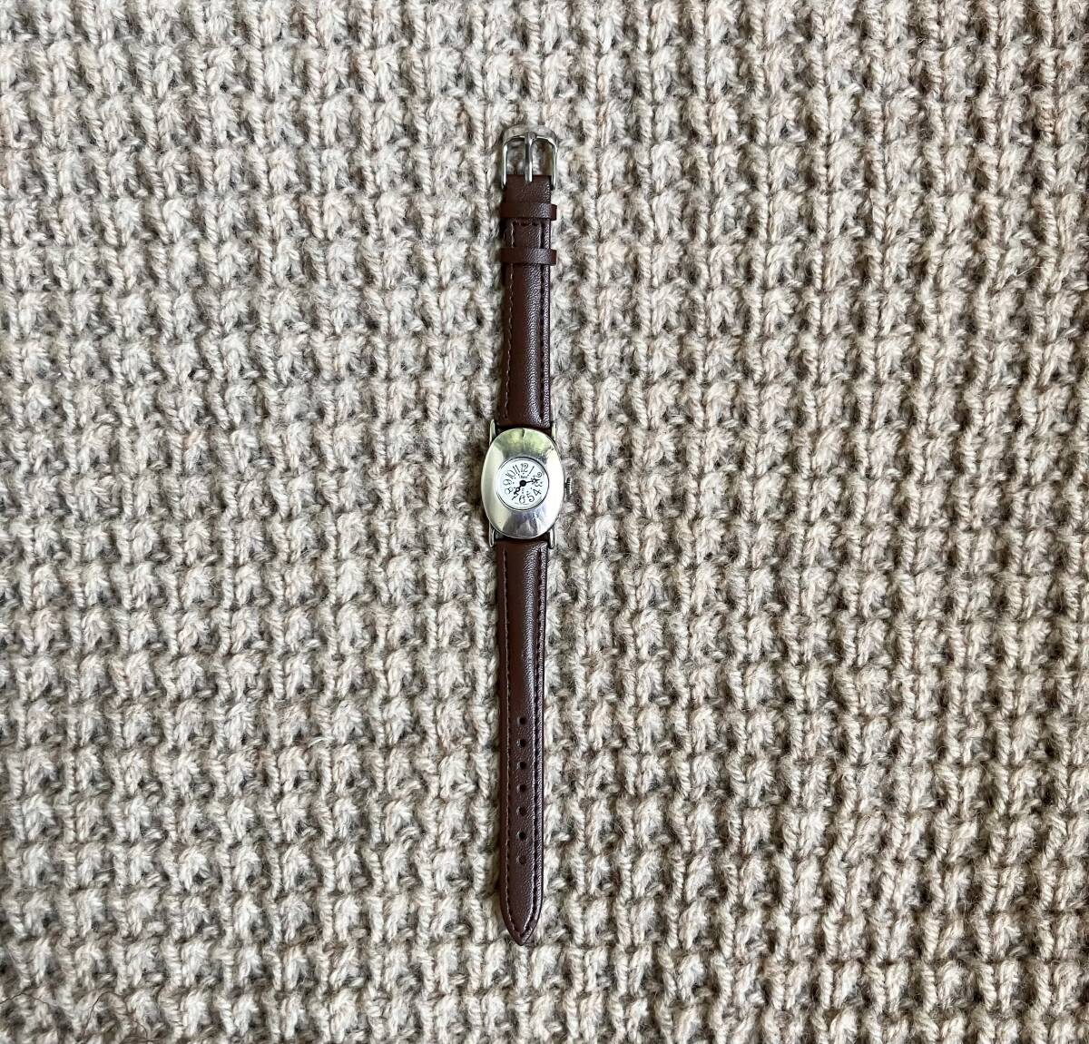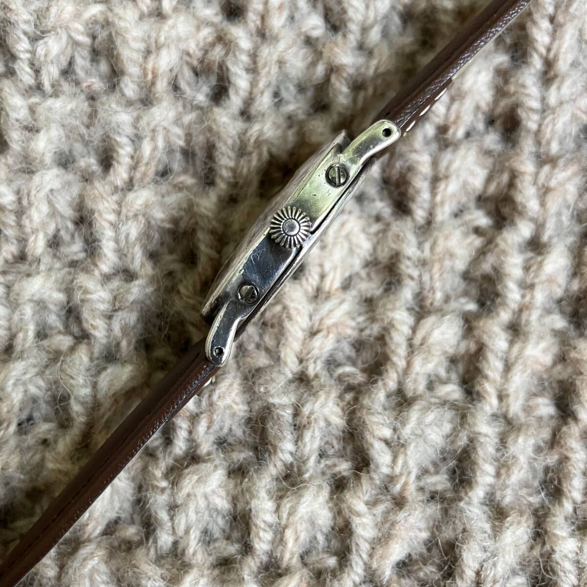 色はシルバー、ベルトはブラウン、素材は銀無垢、フランス製。