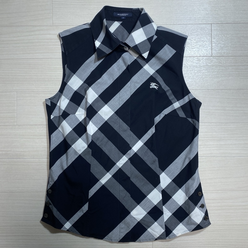 BURBERRY LONDON/バーバリー ロンドン/ブラックノヴァチェック/ワンポイント刺繍/ノースリーブシャツ/ブラウス/サイドボタンスリット/40