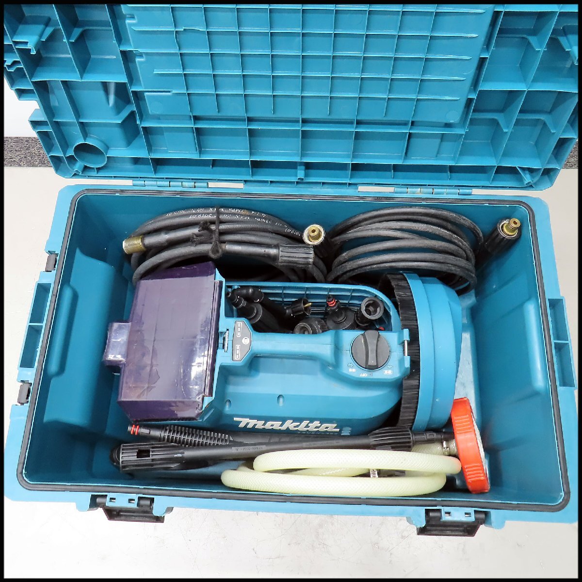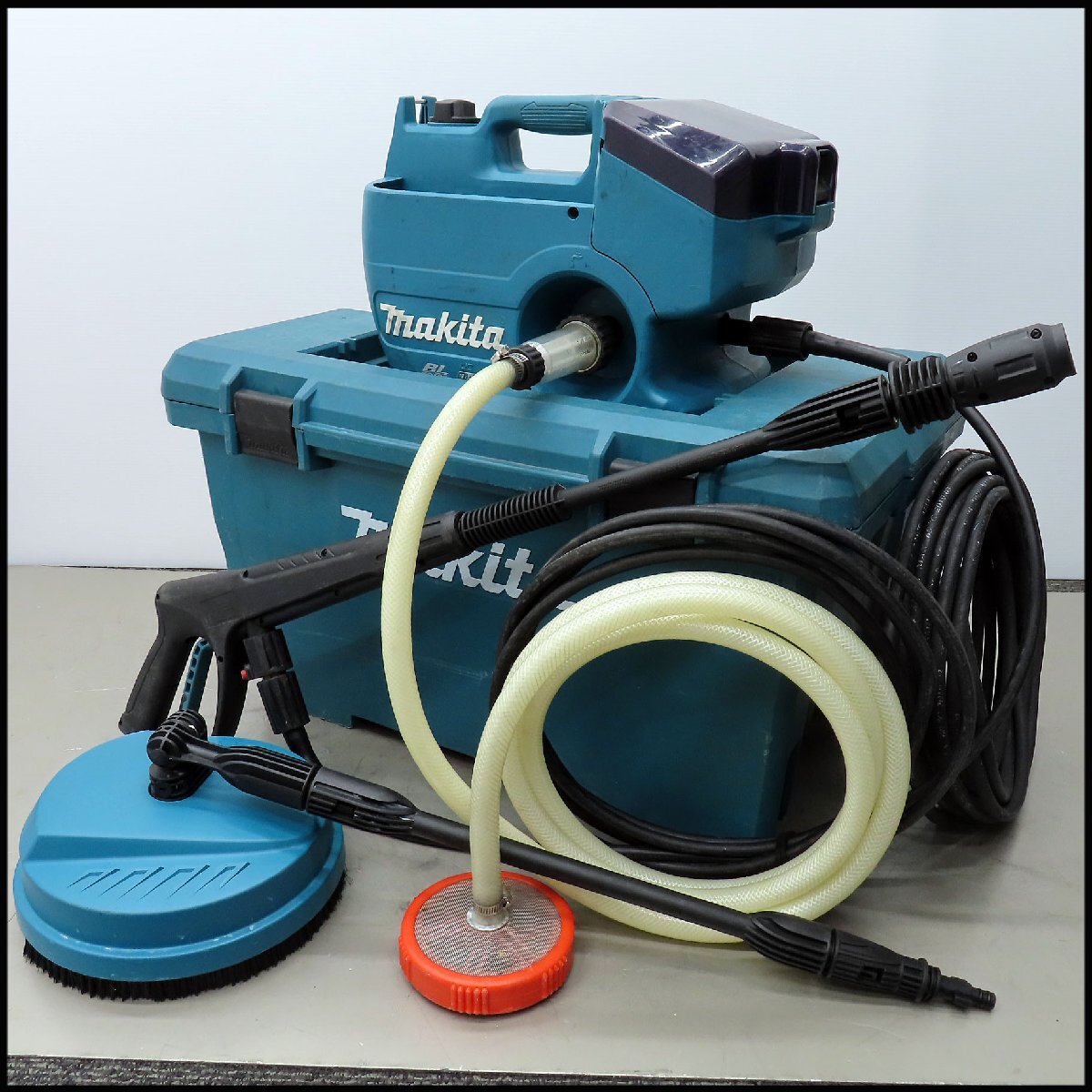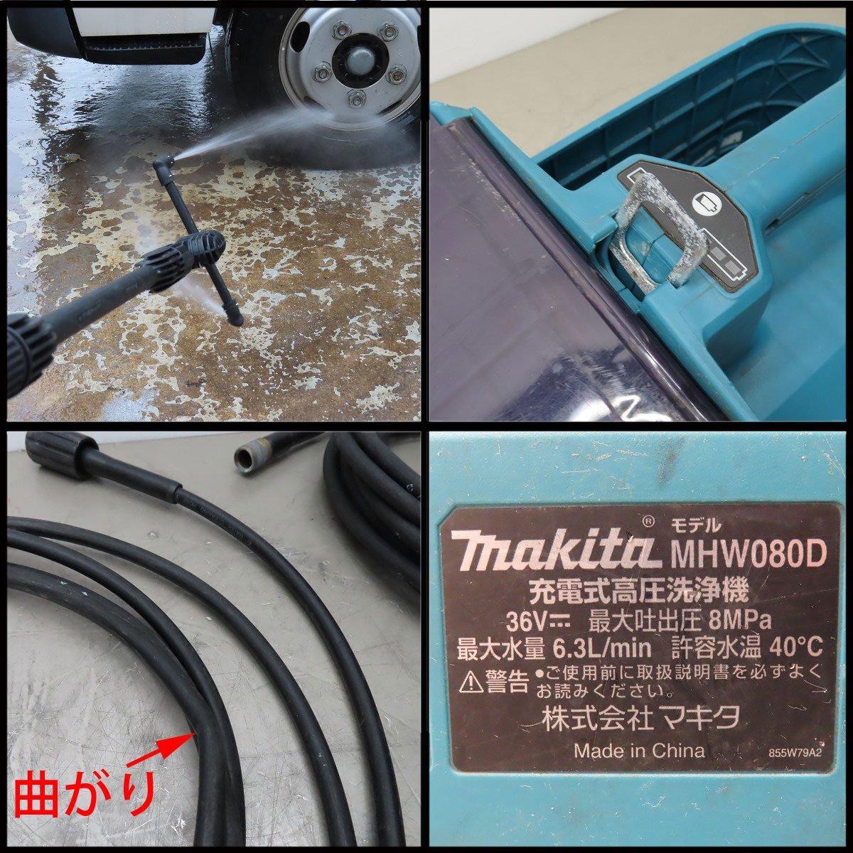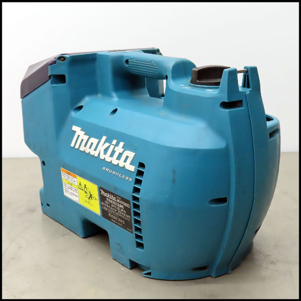 ![]() メーカー:株式会社 マキタ 本体型式:MHW080D 動作電源:バッテリー BL1860B×2個 ※36V 最大吐出圧:8MPa 最大水量:6.3L/min 本体外形寸法:長さ 約440mm × 幅 約210mm × 高さ 約270mm 付属高圧ホース長さ:5メートル(+延長10メートル) ※総長 15メートル 本体重量:約5.4Kg ボックス外形寸法:幅 約680mm × 幅 約420mm × 高さ 約380mm 総重量:約16Kg 参考→ メーカーサイト1 取り扱い説明書→ メーカーサイト2 汚れ・傷などありますが、極端なダメージは見当たりません。 当方所持のバッテリーを用いて、動作は確認済です (※使用にはバッテリー・充電器のご用意が必要です)。 床洗浄用ブラシは別型式のオプションですが、本機に取り付けての 使用が可能なようでした(画像参照)。 メーカー公称の最大吐出圧は8MPaですが、計器を用いて圧力測定までは 行っておりません。 お使い頂けると思いますが、メンテナンスなど要された際はご容赦頂き、 現状でお納め下さい。 ☆商品は画像Aに見られるもので全てとなります。 ご不明な点がありましたら、お気軽にご質問下さい。 ●発送方法について 佐川急便170サイズ/50kg予定(元払) (※沖縄・離島地域除く) ○送料について 地域別料金表(170サイズ) ◆落札価格に対して消費税をお預かりいたしますのでご了承ください◆ また、店舗への直接のお引取りも歓迎いたします。 |