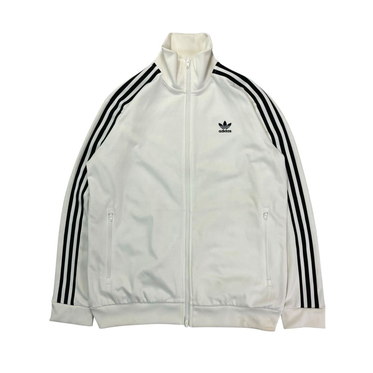 【品名】(KA1011) adidas アディダス トラックジャケット ジャージ ホワイト ブラック スリーストライプ メンズ XOサイズ トレフォイルロゴ