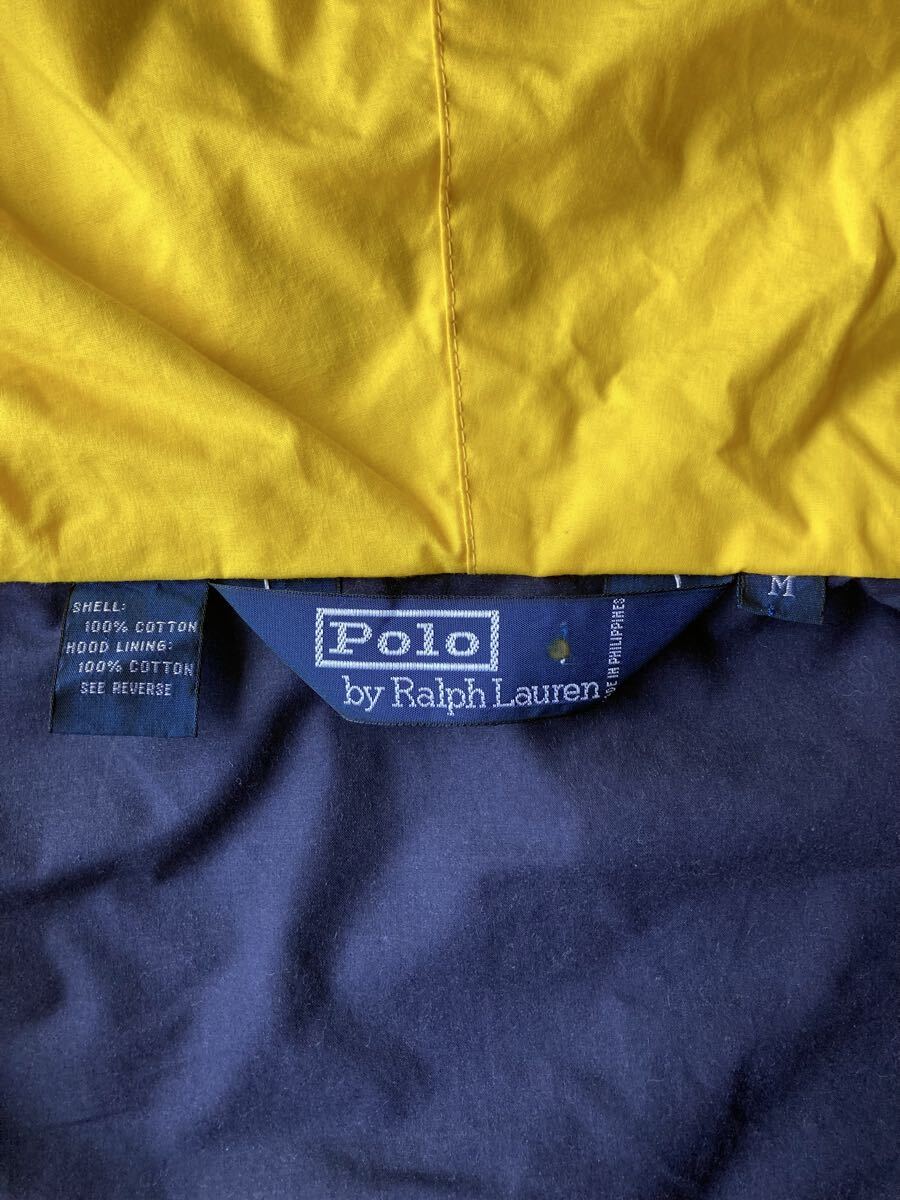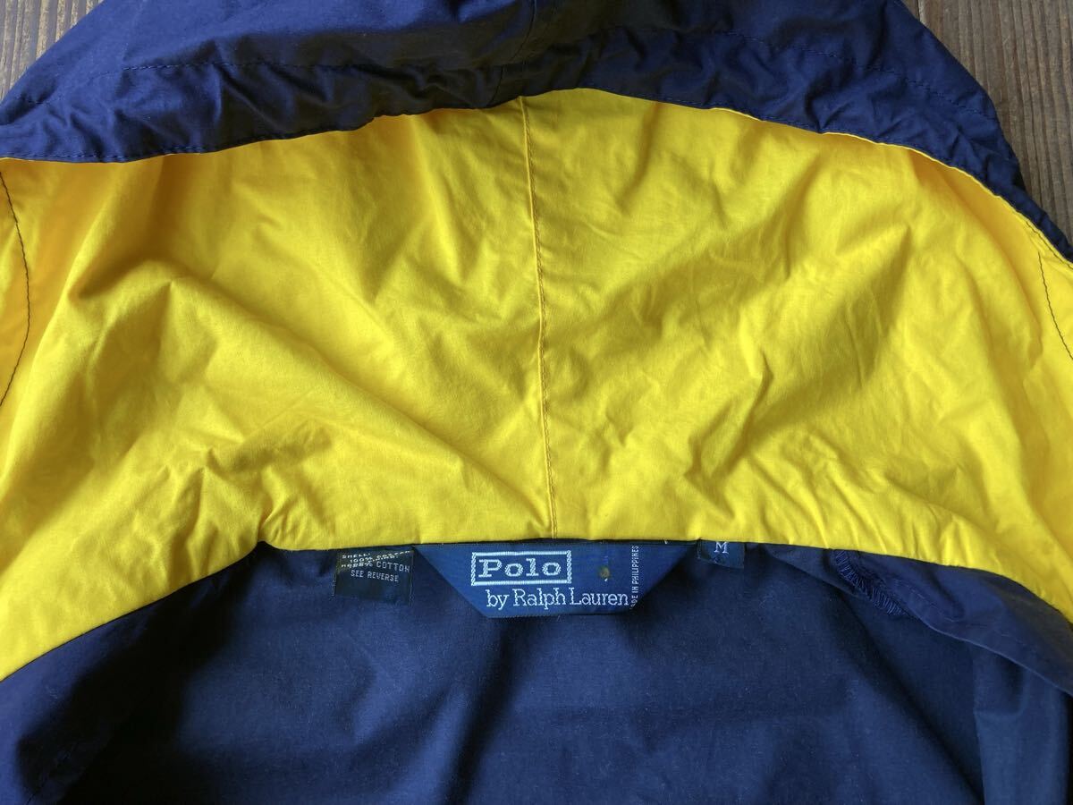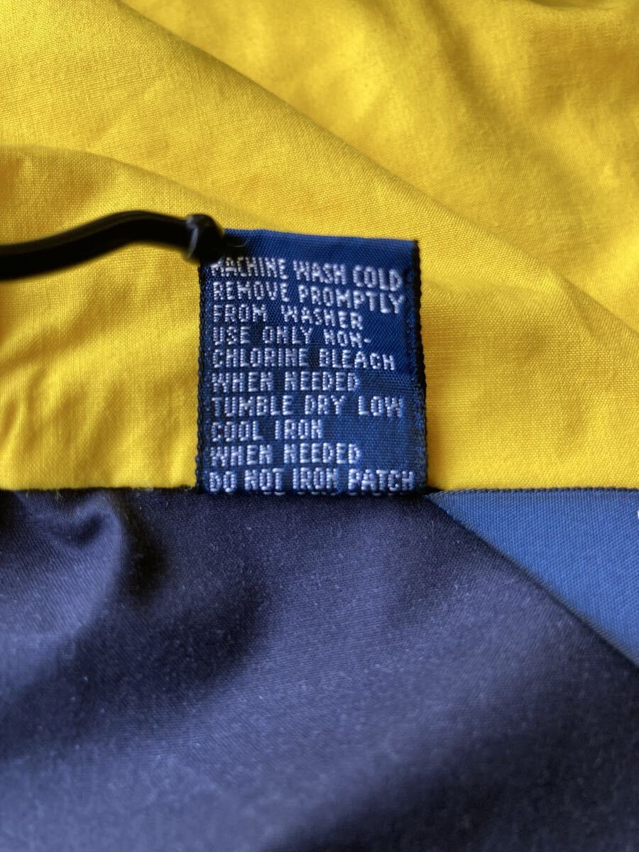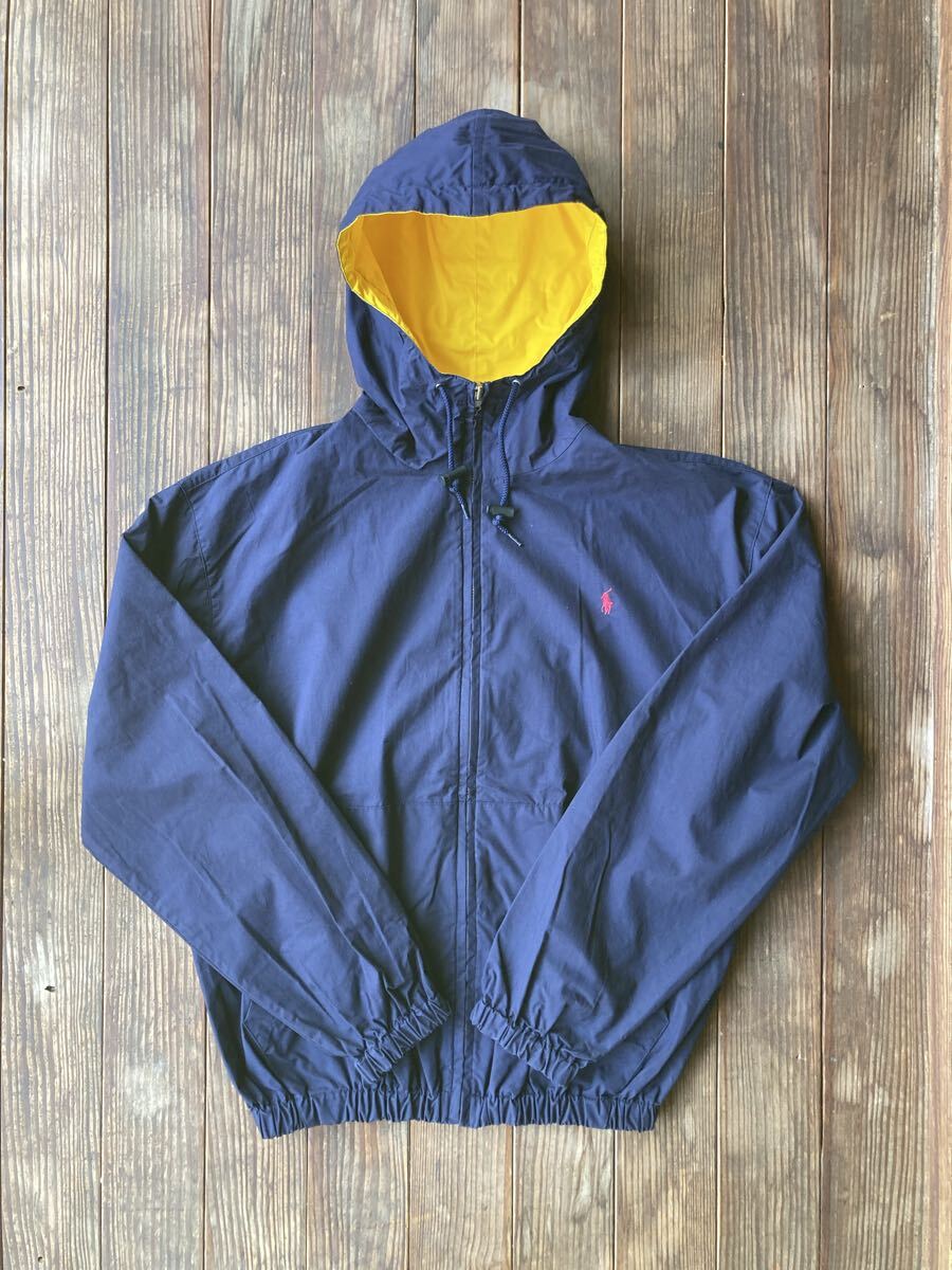 素材は綿100、大変珍しいフードのツートーンカラーで、ネイビー×イエローのグッドカラーです。