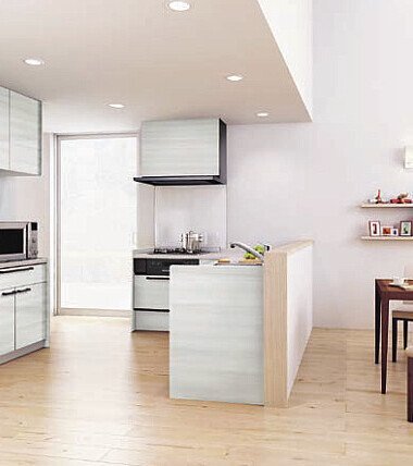 ◆鏡面仕上げが美しく映える木目柄の扉『グラセウッドホワイト』