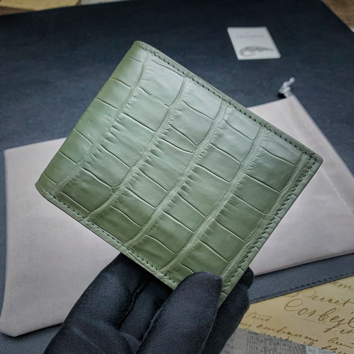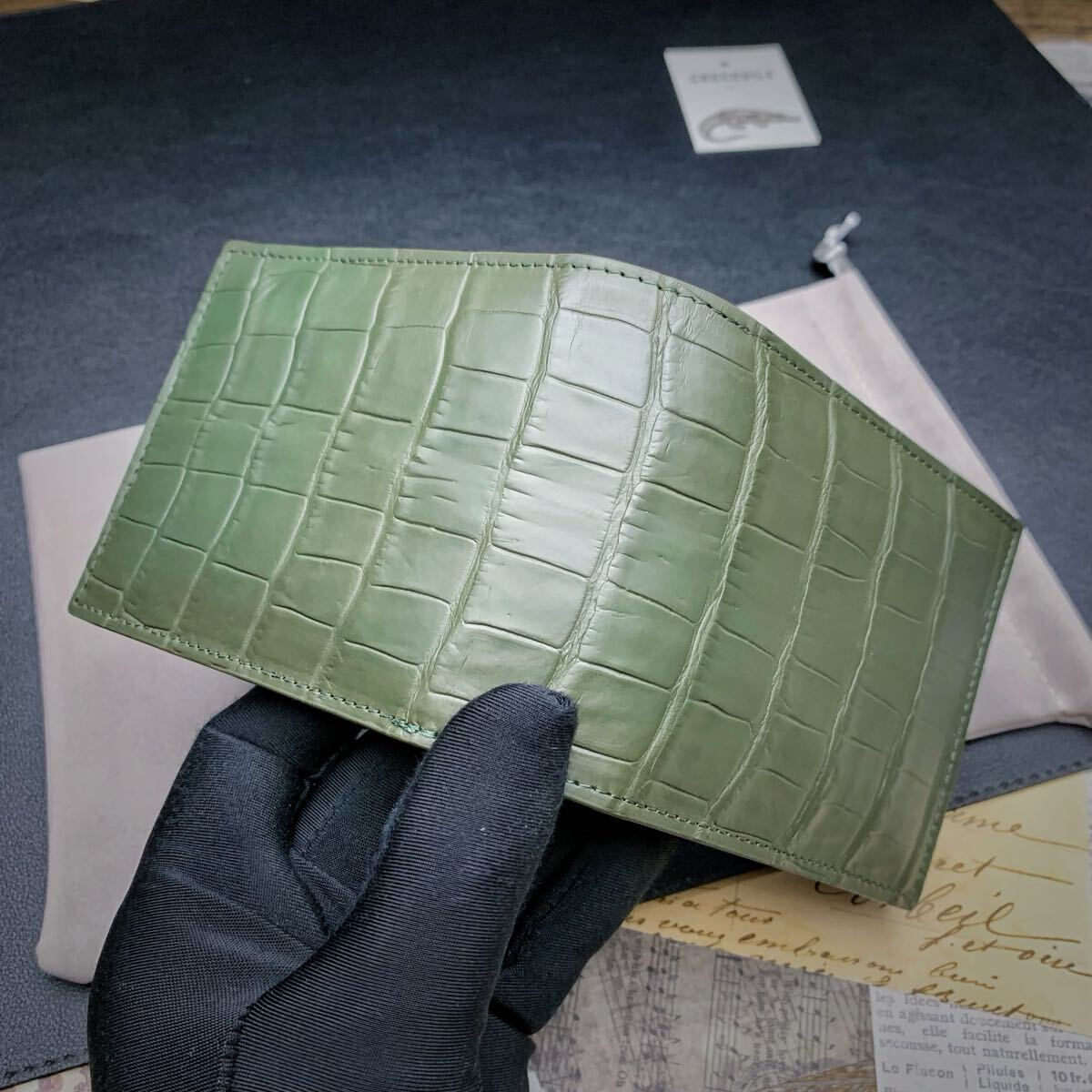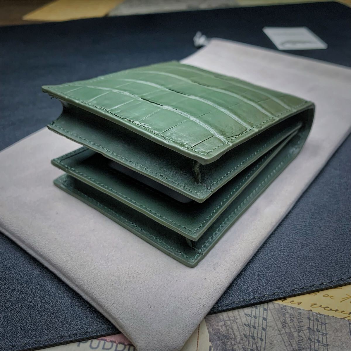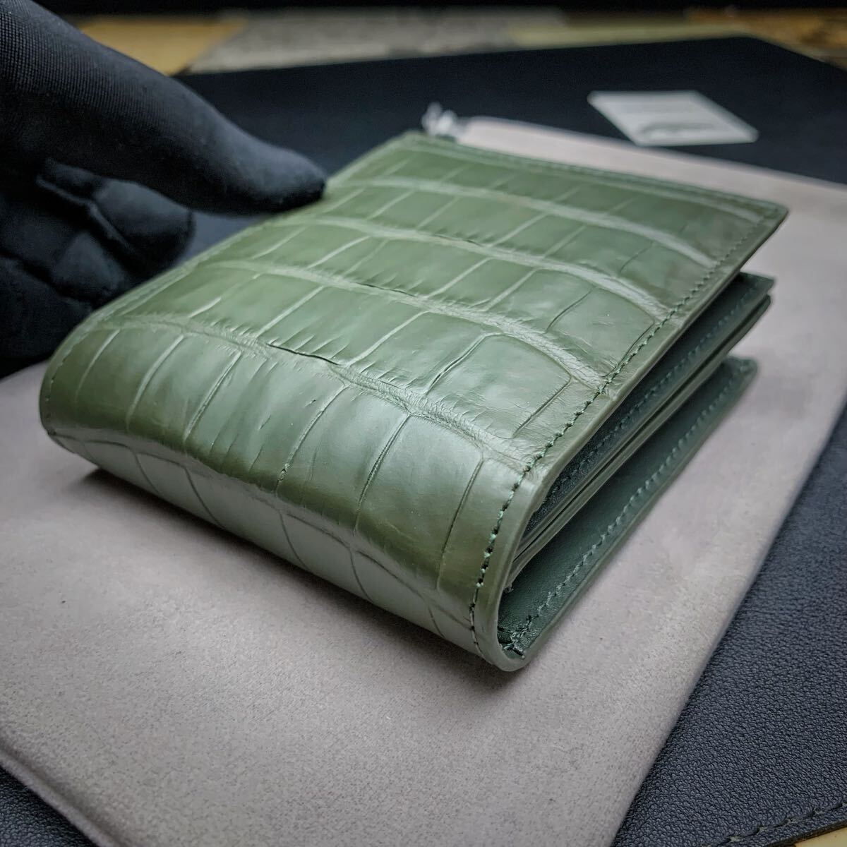 ・クロコダイルと呼ばれている品種のワニ革は人気が高く、独特の模様と凹凸が魅力で、高級ブランド品を中心にクロコダイルが多く使われています。今回はワニ革の代表格である『シャムクロコダイル』のセンターカット腹革の2つ折り財布を出品します。