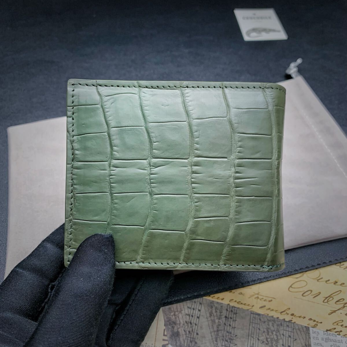 【実物撮影】新品 クロコダイル メンズ 長財布 ラウンドファスナー 未使用 ワニ 2つ折り 希少緑色 ウォレット 艶消し仕上げ